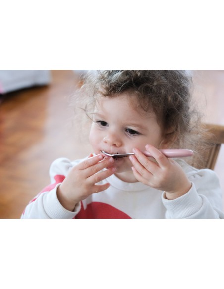 Çocuğunuza kendini yetişkin hissettirecek çatal, bıçak ve kaşık seti. Yuvarlak hatlar çocuğun ağzına uygundur ve diş etlerine zarar verme riskini ortadan kaldırır.