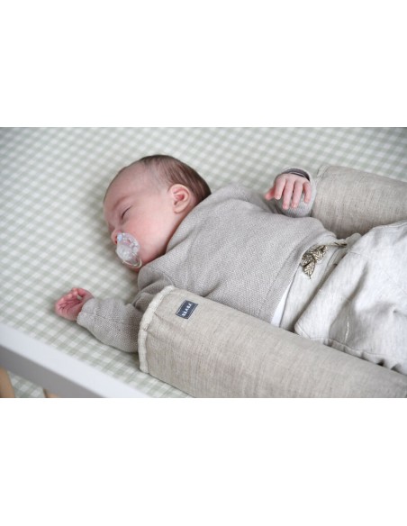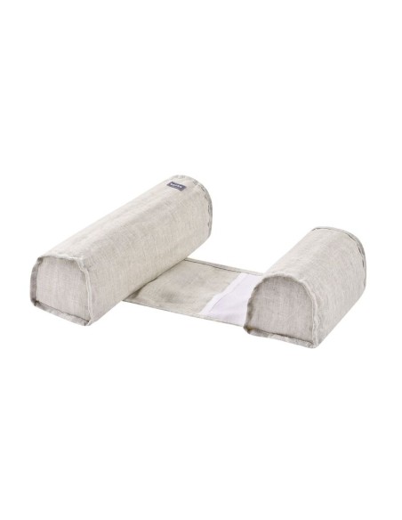 Bebeğin yattığı yumuşak pamuklu bir şeritle birbirine bağlanan 2 dolgu yastığa sahiptir.