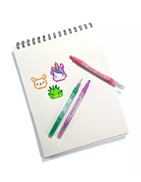 Bu çift işlevli kalemler ile yaratıcılığınıza yeni bir boyut katabilirsiniz! Kalemlerinin iki yönlü tasarımı, bir ucunun damga, diğer ucunun ise yazı yazmak veya çizim yapmak için kullanılmasını sağlar. Okul malzemelerine süslü eklemeler yapmak, boyama kitaplarında kullanmak veya kendi piksel sanatınızı oluşturmak için harikadır. Not tutanlar ve liste yapanlar ise damga ucunu kullanmayı ve not alırken maddeleme işaretleri yapmayı çok sevecekler.