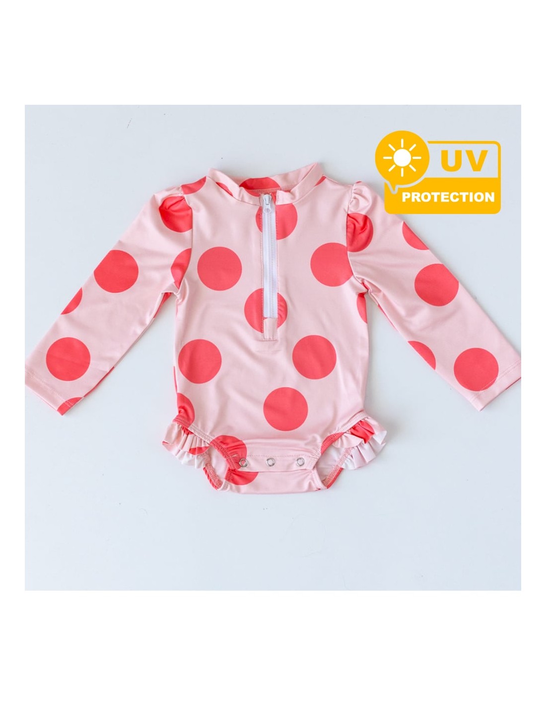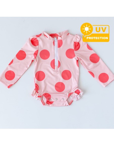 Mama Yoyo - Önden Fermuarlı Alttan Çıtçıtlı Mayo Büyük Puantiye Pembe