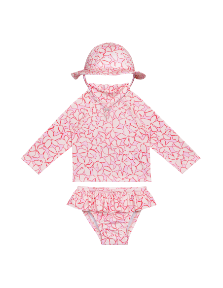 Bu 3 parçalı kız seti, SPF 50+ koruması ve çabuk kuruyan geri dönüştürülmüş polyester kumaşıyla yüzme için mükemmeldir. Bu çok yönlü setle suda korunaklı ve rahat kalın.