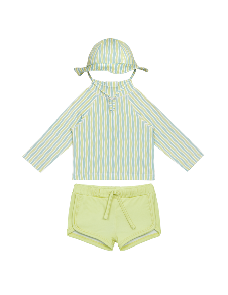 Bu 3 parçalı erkek çocuk seti, SPF 50+ koruması ve çabuk kuruyan geri dönüştürülmüş polyester kumaşıyla yüzme için mükemmeldir. Bu çok yönlü setle suda korunaklı ve rahat kalın.