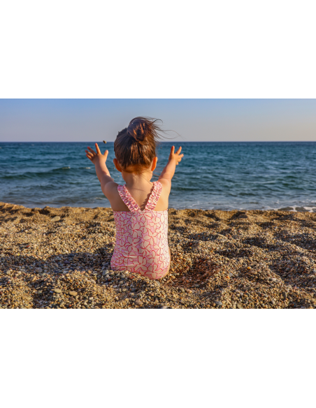Bu Smocked Mayo, sadece smocked askılarıyla şık bir görünüm sunmakla kalmaz, aynı zamanda SPF 50+ hızlı kuruyan geri dönüştürülmüş polyester kumaşıyla güvenilir güneş koruması da sağlar. Herhangi bir plaj günü veya havuz kenarı etkinliği için mükemmeldir. Bu olmazsa olmaz mayoyla güvende ve şık kalın.