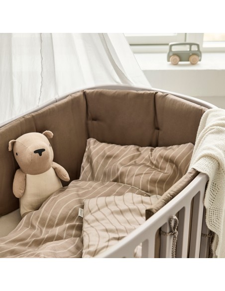 Leander Classic™ karyolanın oval şekli için özel olarak üretilmiş şilteyi kullanarak çocuğunuza optimum konfor ve havalandırma sağlayın. Eşlik eden tekstil serisinden güzel, uyumlu renklerde güzel aksesuarlar ekleyerek yatağın görünümünü tamamlayın.