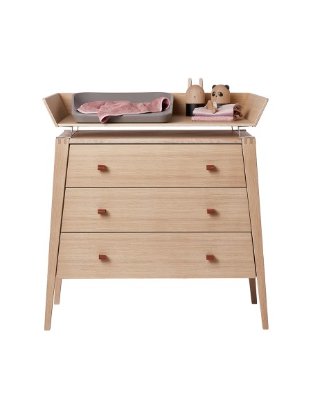 Yeni doğmuş bir bebek için rahat bir alt değiştirme ünitesine ihtiyacınız vardır. Leander Linea alt değiştirme ünitesi, Leander Linea™ şifonyerini işlevsel ve güvenli bir alt değiştirme alanına dönüştüren şık bir aksesuardır. Alt değiştirme ünitesi, herhangi bir montaja gerek kalmadan şifonyere güvenli bir şekilde takılır.