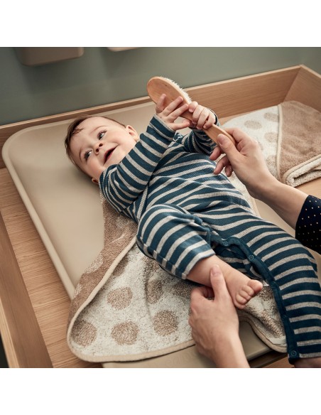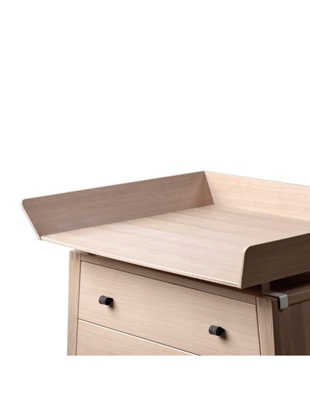 Alt değiştirme ünitesi çocuğunuzla geçireceğiniz değerli anlara yer açar. Kenarları yükseltilmiş olarak tasarlanan alt değiştirme alanı, alt değiştirme sırasında bebeğinizi güvende tutar. Geniş alt değiştirme yüzeyi ve Leander Linea™ şifonyerin üç geniş çekmecesi, örneğin Matty™ alt değiştirme minderi ve bebek bezleri, bebek mendilleri ve kıyafetleri için bol miktarda alan sağlar.
