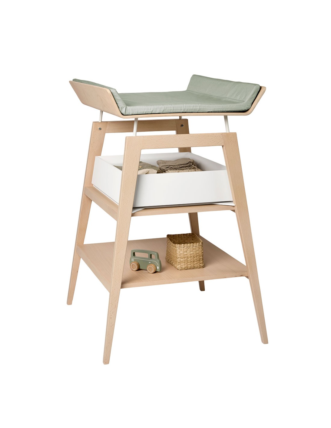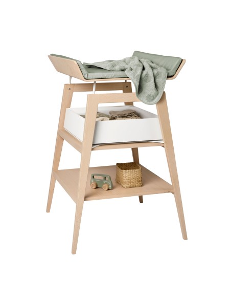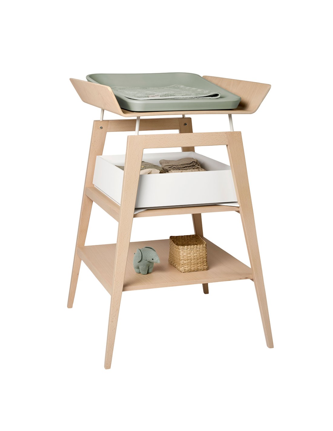 Leander Linea™ alt değiştirme masası, eviniz için pratik ama aynı zamanda estetik açıdan hoş bir ektir. İkonik şekli ve eğimli çizgileriyle Leander Linea™ serisiyle uyumludur. Yüksek kenarları bebeğinizi güvende ve rahat tutarken, geniş alt değiştirme yüzeyi bebeğinizle sohbet etmek, sarılmak ve gülmek için değerli anlar için yer açar. Alt değiştirme masasında her şeyin erişilebilir olduğundan emin olmak için iki raf bulunur. Ekstra depolama alanı için geniş bir çekmece ve pratik Leander düzenleyiciler eklenebilir.