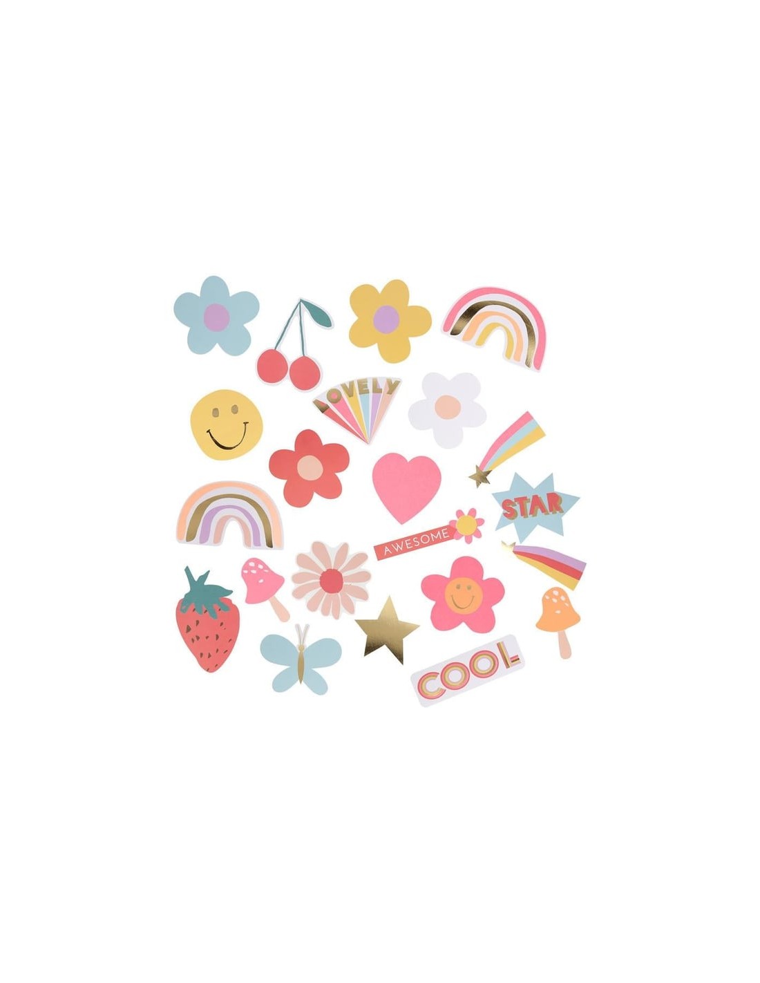 Eğlenceli ve nostaljik olan bu cesur ve parlak çıkartmalar, not defterlerine veya kartlara, posterlere veya hediye etiketlerine yerleştirmek için mükemmeldir.