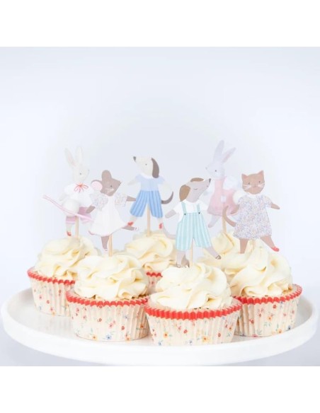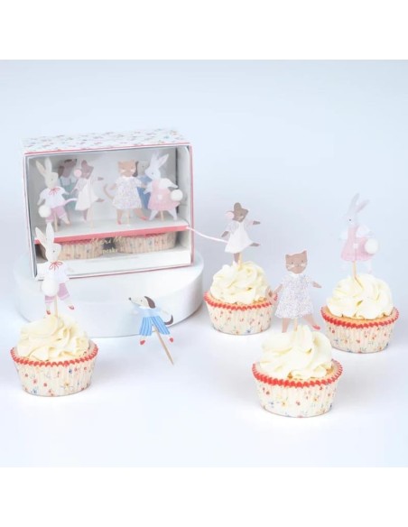- Tavşanlar, köpekler, kediler ve fareler içeren 6 tasarımda 24 cupcake süsü