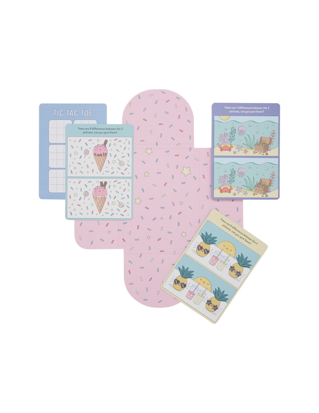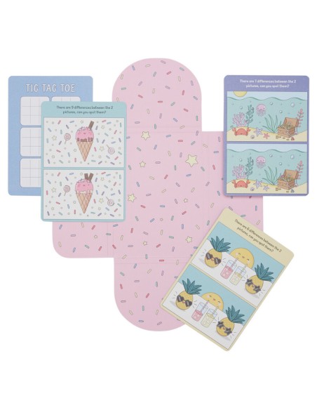 Her biri farklı bir tasarıma sahip olan bu 24 kartın üzerinde, eğlenceli temalara sahip fark bulma oyunu ve kartların arka yüzünde ise ekstra eğlence için tic tac toe oyunu yer alıyor.