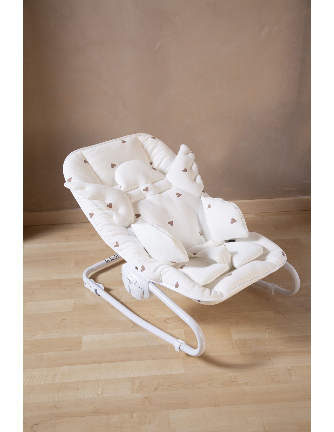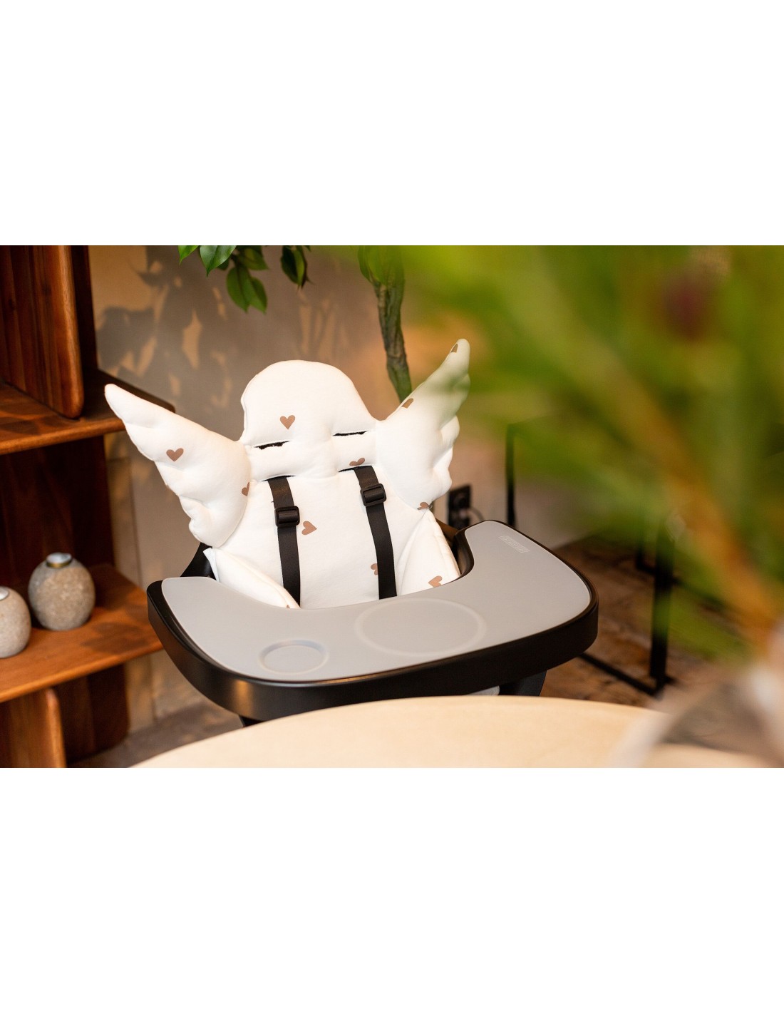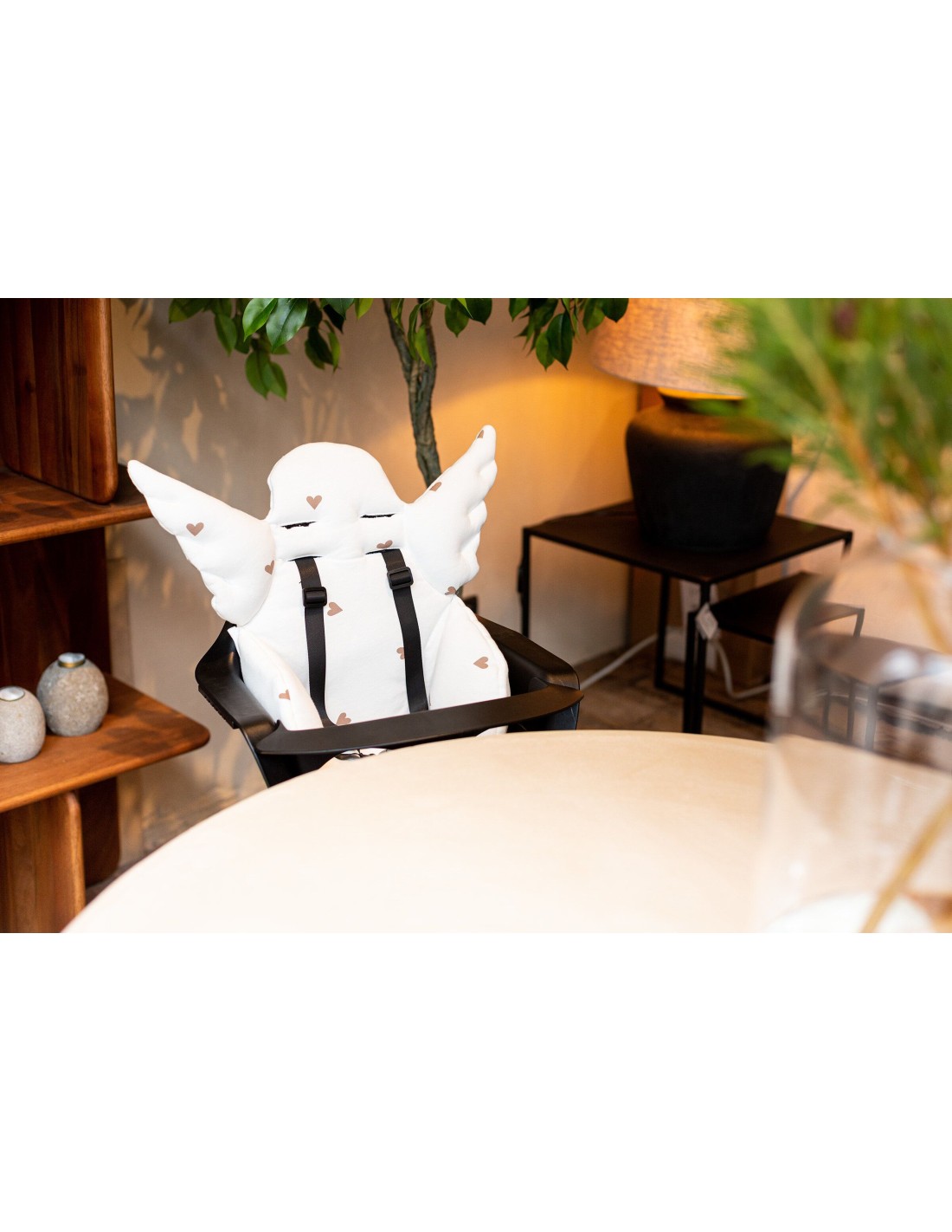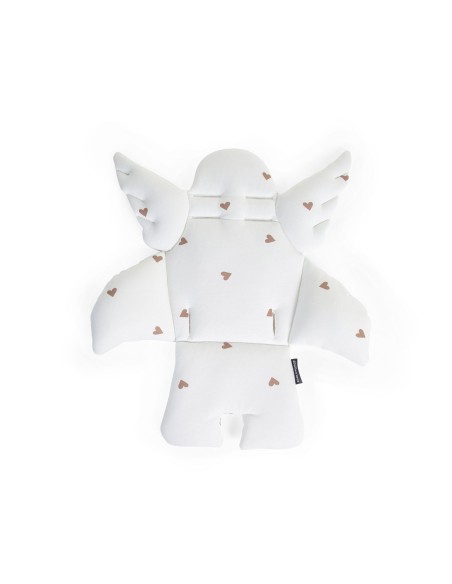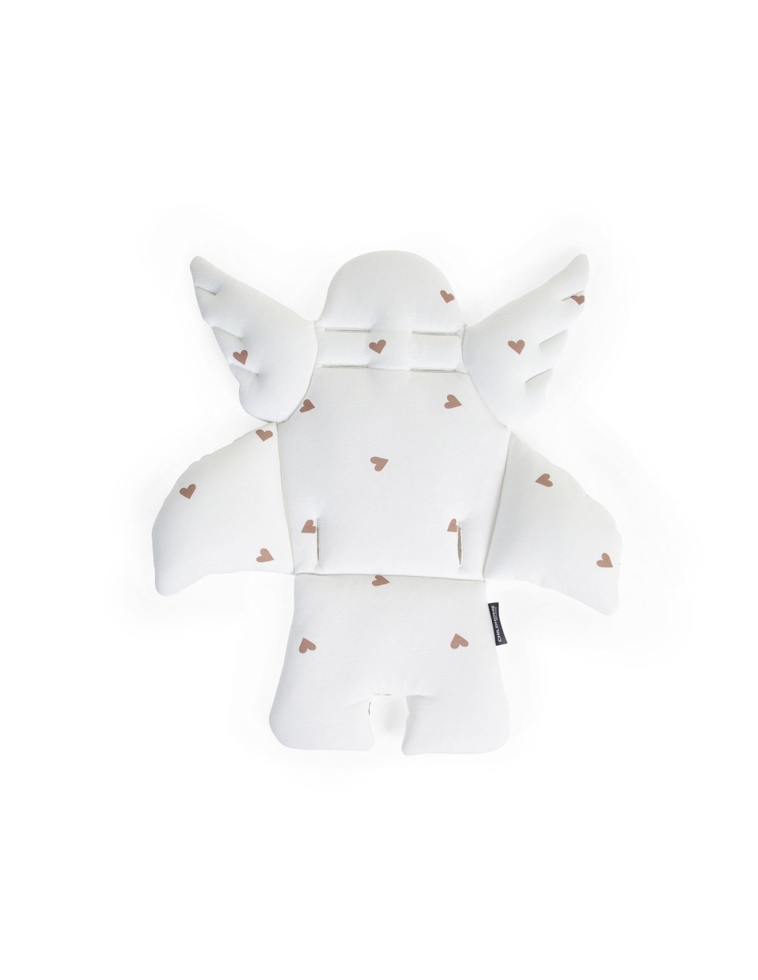 Eğlenceli bir oturma minderi, bebeğinize daha fazla konfor sağlar. Bu çok amaçlı minder, tüm çocuk sandalyelerinde, ana kucağında ve hatta bebek arabalarında kullanılabilir! Oturma minderi, ister yatarak ister oturarak olsun, bebeğinize ekstra yumuşaklık ve destek sağlar. Minderdeki delikler, emniyet kemeri kayışlarını minderden geçirmenizi ve çocuğunuzun güvenli bir şekilde bağlanmasını sağlar. Jersey Kalpler Melek Minderi, her iki tarafında da sevdiğiniz kişiyi küçük bir meleğe dönüştürecek romantik melek kanatlarına sahiptir.