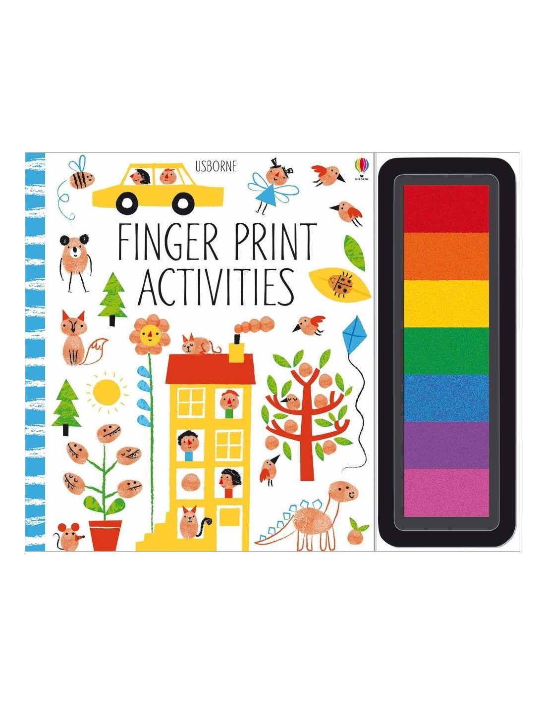 A colourful book full of pictures to fingerprint and with its own inkpad of seven bright colours to paint with. Bursting with fun fingerprinting ideas, from decorating turtles’ shells and filling a vase with flowers to printing mice, a scary t-rex or a colourful caterpillar. With fingerprinting tips and extra pages for children to fill with their own fingerprint creations