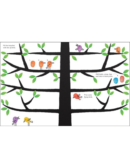 Kendi mürekkep pedine sahip, yedi parlak renkle boyama yapabileceğiniz, resimlerle dolu rengârenk bir kitap! Kaplumbağaların kabuklarını süslemekten çiçeklerle dolu bir vazo yapmaya, fareler, korkutucu bir T-Rex veya renkli bir tırtıl basmaya kadar sayısız parmak izi fikri sunuyor. Parmak izi teknikleri ve çocukların kendi yaratıcı parmak izi eserlerini ekleyebileceği ekstra sayfalar da bulunuyor.
