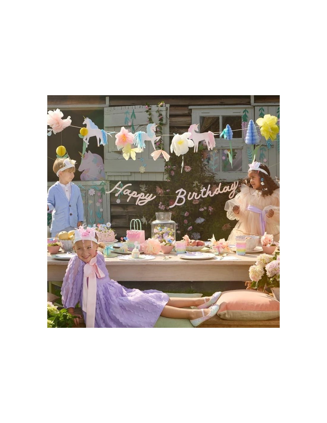 Unicorn ve çayır çiçeklerinin birleşimi, parti cennetinde yapılmış bir eşleşmedir.