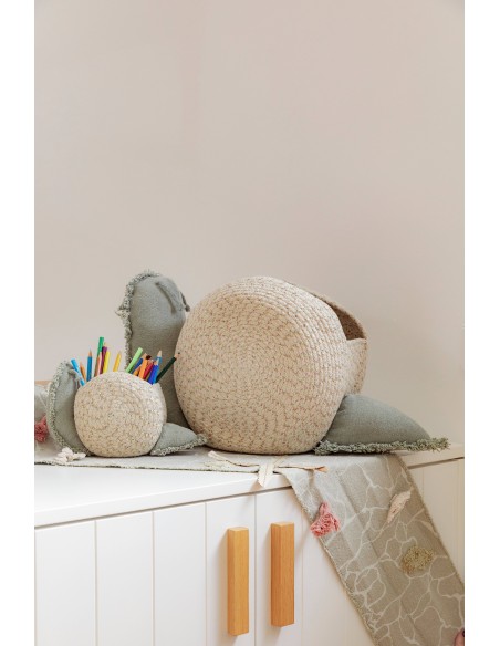 Yavaş ve Sakin Bir Cazibe! Bu sevimli el yapımı salyangoz sepeti, işlevsel olduğu kadar benzersiz de. Saklamak için açılan dokulu dikişli kabuğu, narin püsküllü yumuşak kanvas gövdesi ve eğlenceli örgülü antenleriyle hem şıklığı hem de işlevselliği bir araya getiriyor.