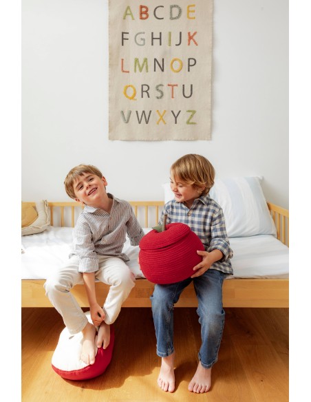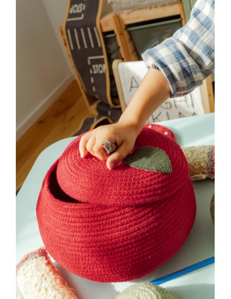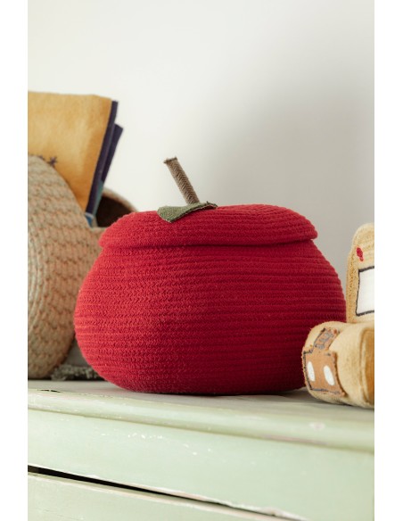 Saklamak için tatlı bir elma. Okula dönüş sezonu, masanızda bir elma olmadan tamamlanmış sayılmaz! Bu el yapımı sepet, hafif yassılaştırılmış kırmızı bir elma şeklindedir ve dayanıklılık için PET lifleriyle doldurulmuş pamuklu kordondan yapılmıştır. Her bir parça benzersizdir; küçük hazineleri saklamanın eğlenceli ve rahat bir yoludur.