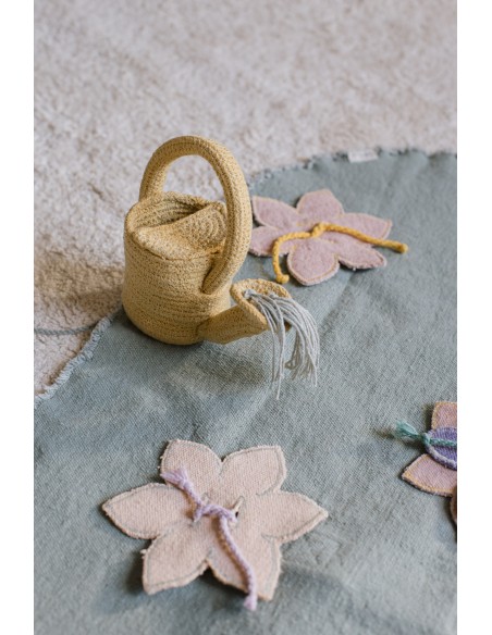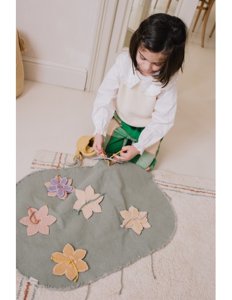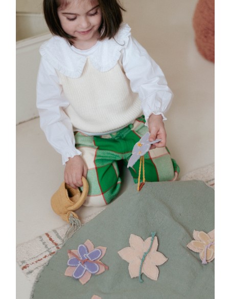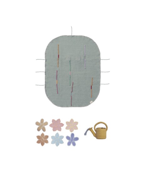 Kendi çiçek bahçenizi yaratın! Hayal gücünü ve etkileşimli oyunu teşvik eden oyun seti. Bu set, kolayca katlanıp bağlanan, kullanışlı bir oyuncak çantasına dönüşür. Vintage mavi pamuklu kanvas, el yapımı bir mini fıskiye ve renkli kordonlar kullanılarak tabana kolayca bağlanabilen 8 şekilli pamuklu kanvas çiçeklerle bir araya geliyor. Kendi fabrikamızdaki tekstil artıklarının geri dönüştürülmesiyle yapılmış olup çocuklarınız için sürdürülebilir bir seçimdir. oyuncaklar.Oynamaya devam edebilmeleri için ev şeklinde geri dönüştürülmüş bir karton kutu içinde paketlenmiş olarak gönderilir!