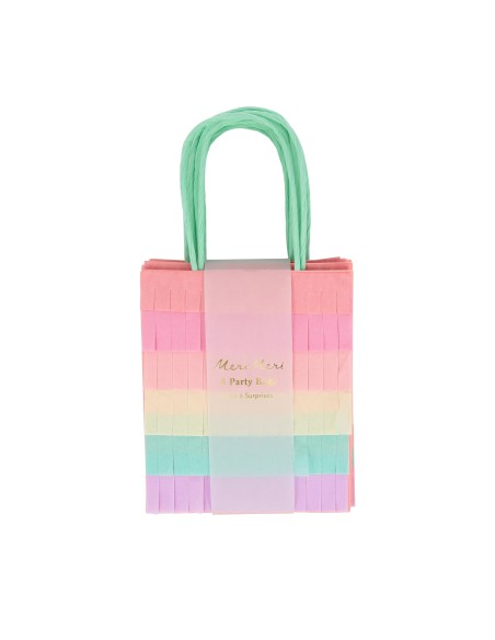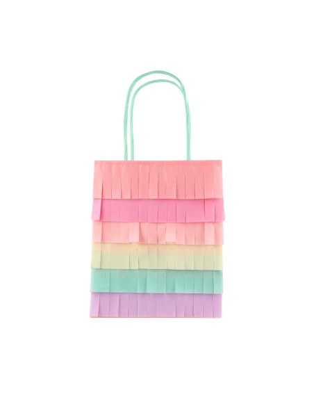 Güzel pastel tonlardaki ipek kağıt püsküller, bu pembe parti çantalarını çok büyülü gösteriyor.