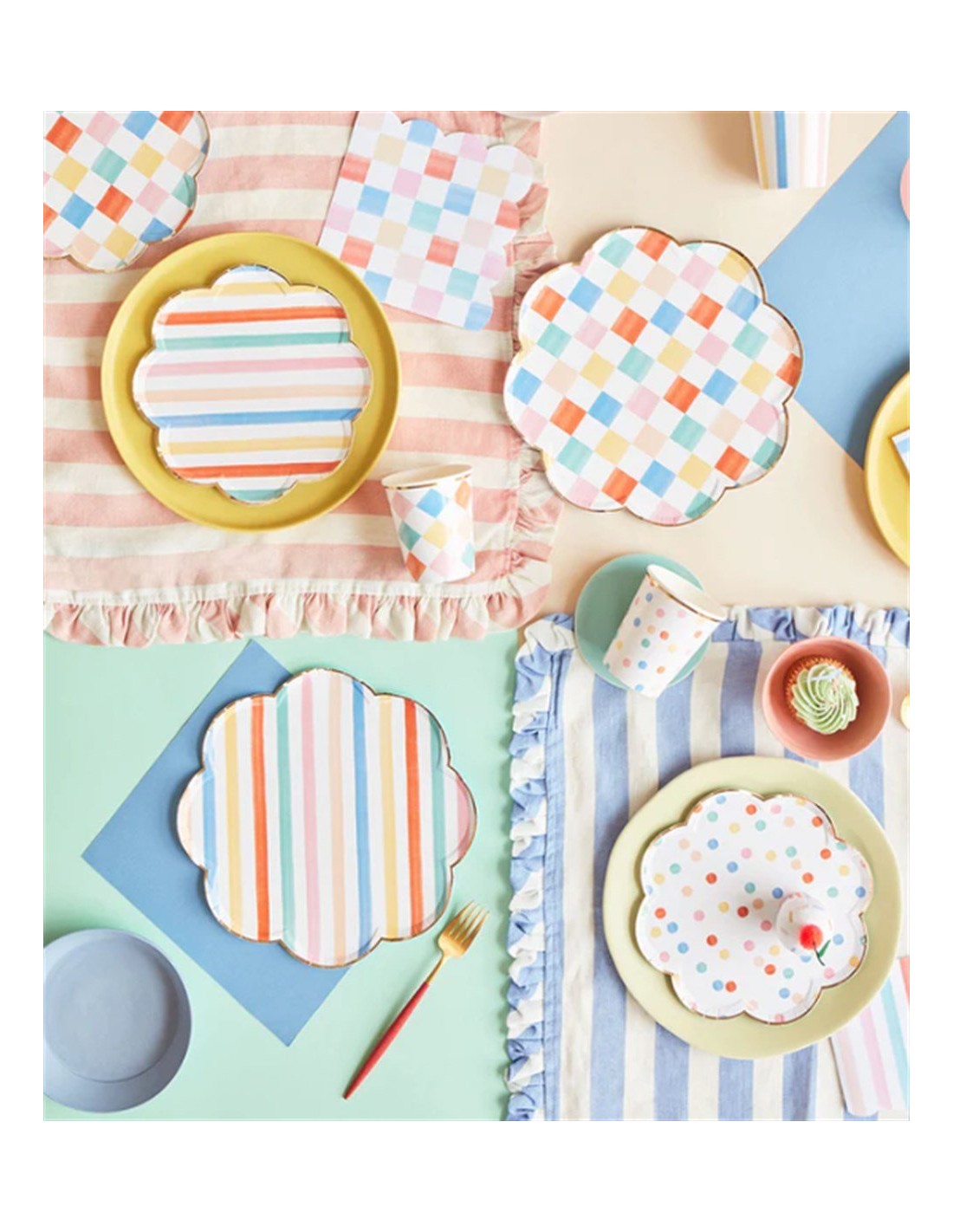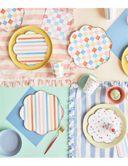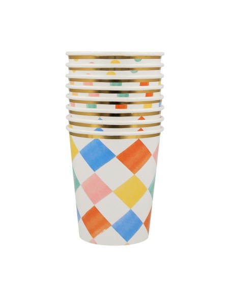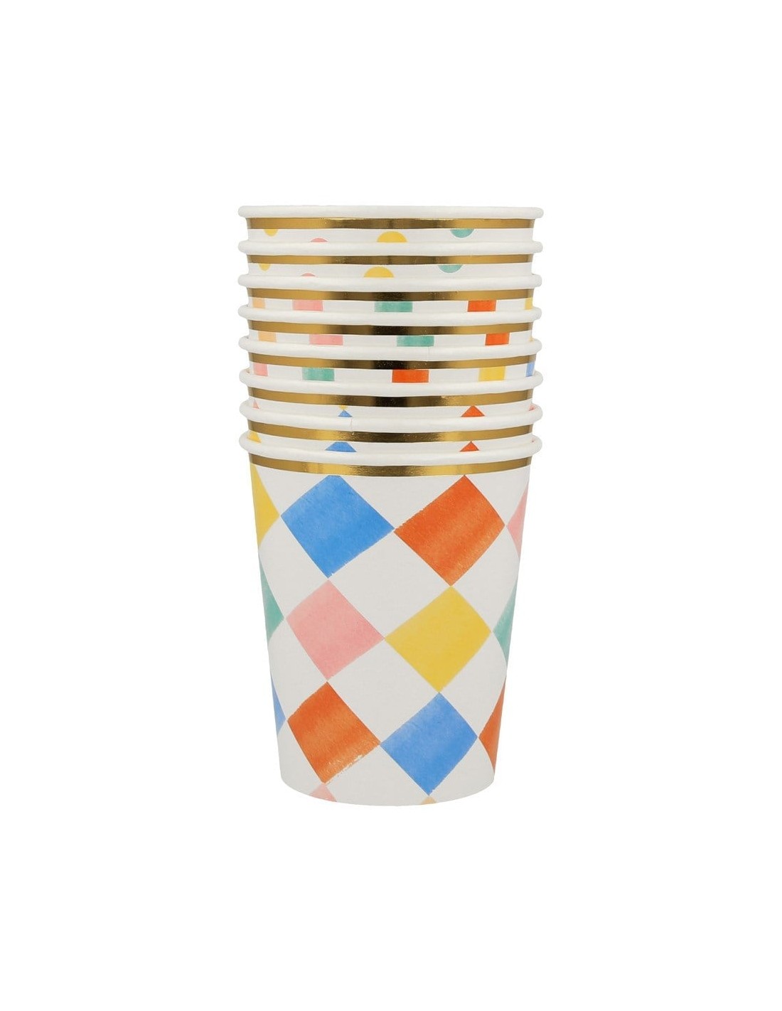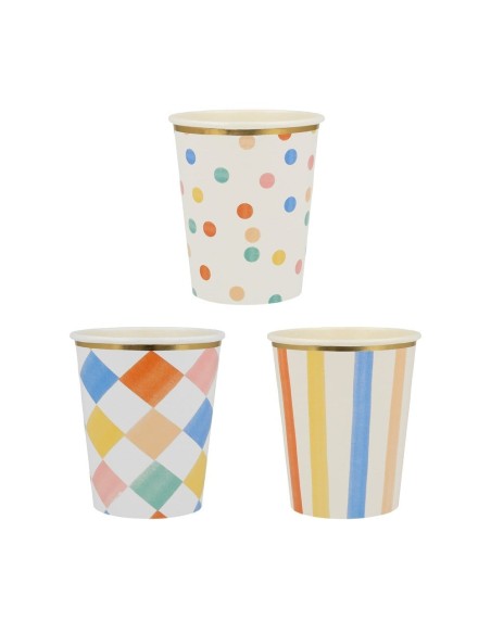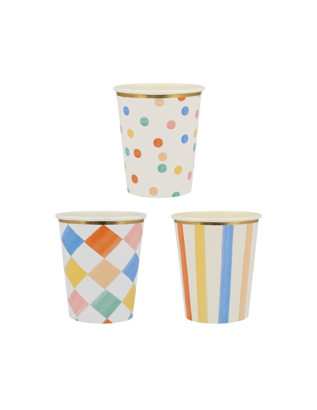 Her sette 3 çizgili, 3 kareli ve 2 benekli bardak bulunur.