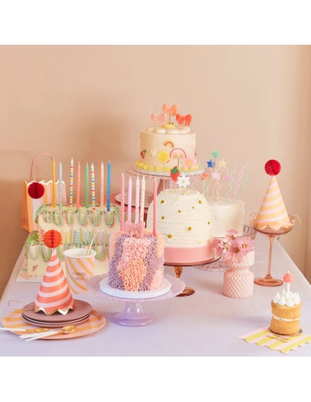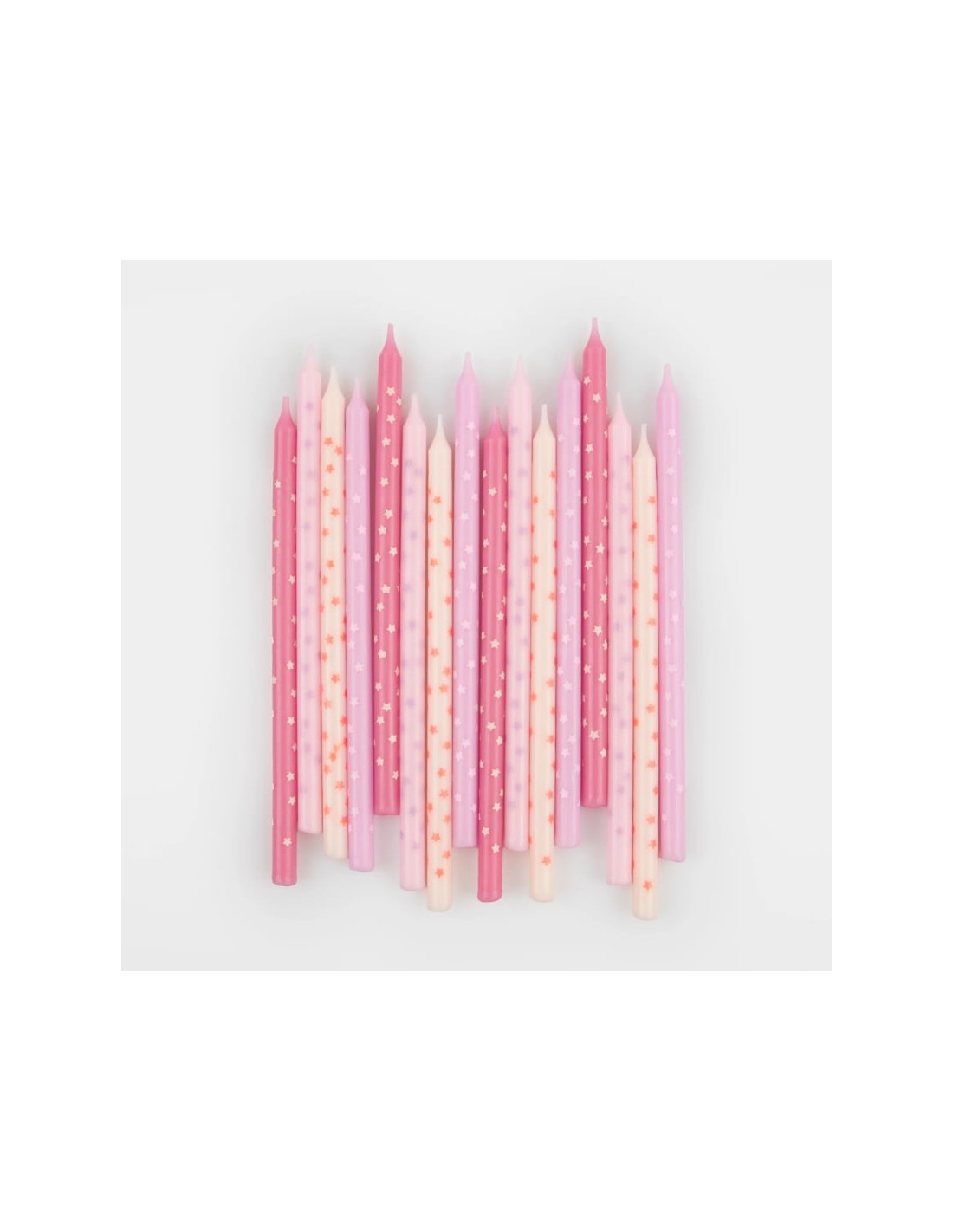 Pembe tonlarında balmumu mumlar Baskılı yıldız deseni 4 renkte 16'lı paket Ürün boyutları: Mum yüksekliği - 5,75 inç