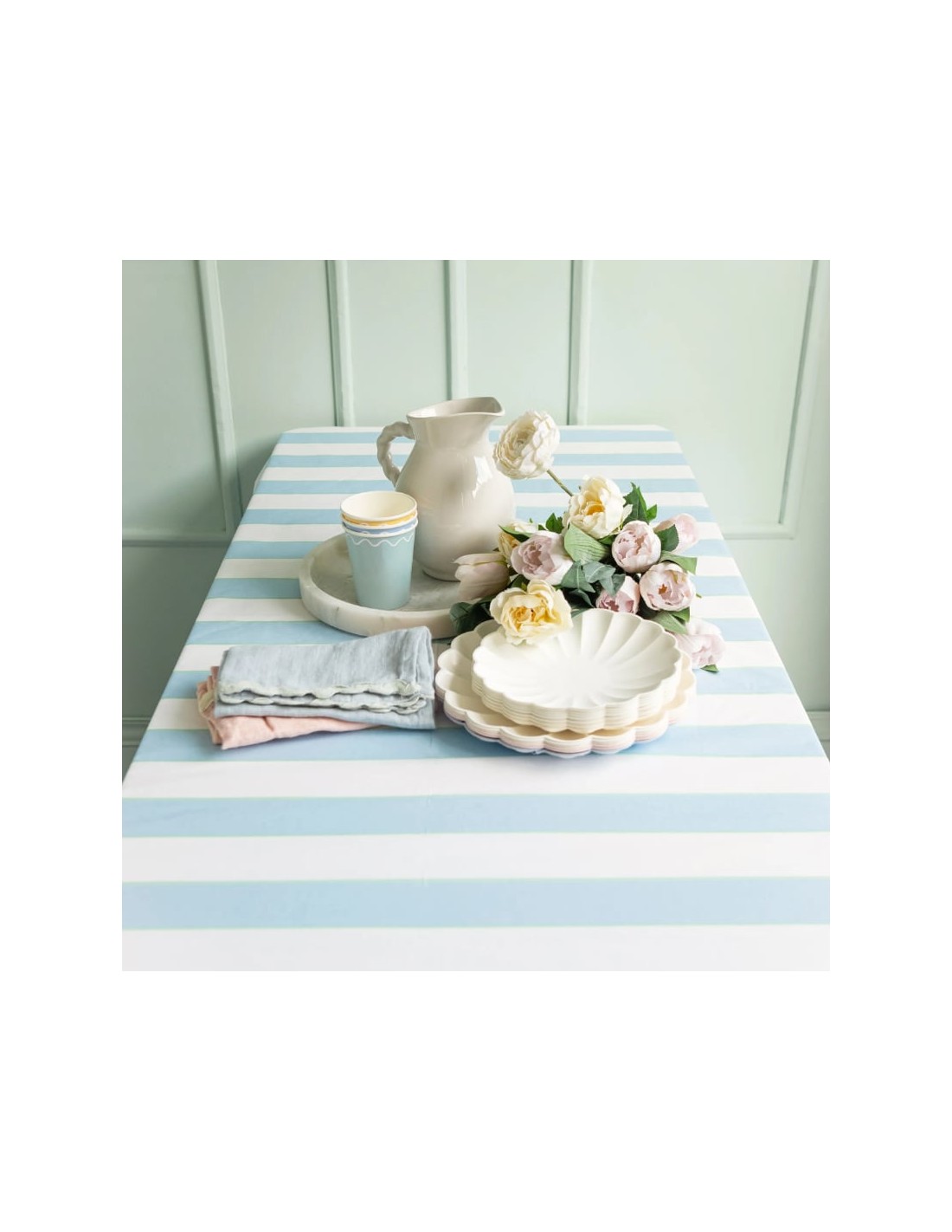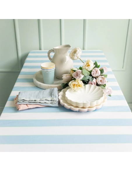 Meri Meri - Soluk Mavi Çizgili Kağıt Masa Örtüsü