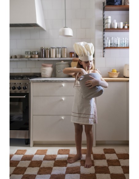 Fayans aşkına! Bu tasarım, halı üzerindeki geleneksel dama tahtası mutfak fayansı desenini tasvir etmektedir. Şekerleme ve kremadan oluşan kontrast oluşturan kareler, her oda dekoruna cesur bir ifade katıyor. Fayans bağlantıları, RugCycled® tabanımızın doğal boyanmamış pamuk ipliğiyle harmanlanmasıyla oluşturulan alttaki çıplak tuvali ortaya çıkarıyor. Mutfak fayanslarının basılması hiç bu kadar yumuşak olmamıştı!