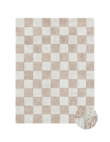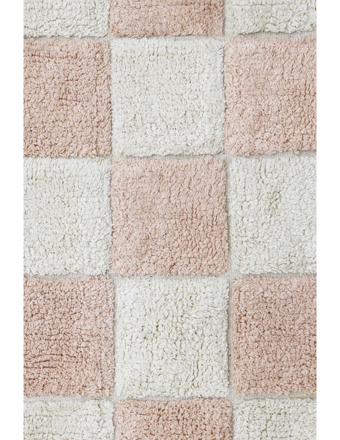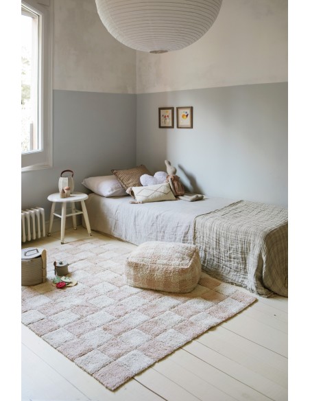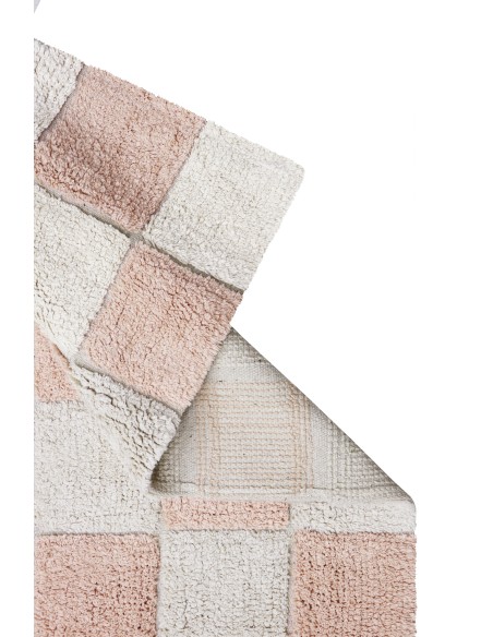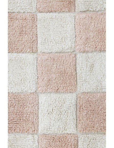 Fayans aşkına! Bu tasarım, bir kilim üzerinde geleneksel dama tahtası mutfak karosu desenini göstermektedir. Yumuşak pembe tonları, çocuk odasına veya çocuk odasına yumuşak bir renk dokunuşu katar. Fayans derzleri, RugCycled® tabanımızı doğal boyasız pamuk ipliğiyle harmanlayarak yapılan, altındaki çıplak tuvali ortaya çıkarır. Mutfak fayansları hiç bu kadar yumuşak olmamıştı!