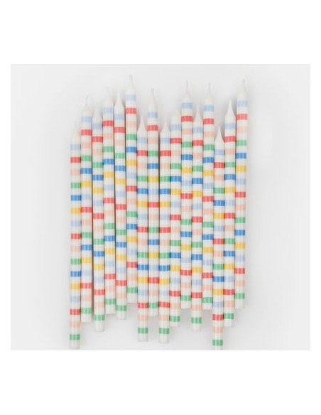 Meri Meri - Multi Renkli Çizgili Mumlar 16 Adet