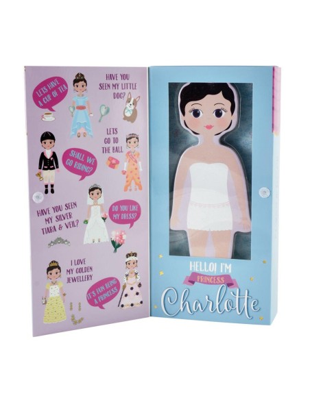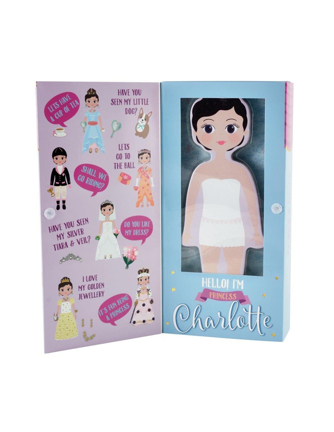 Floss & Rock Mıknatıslı Giydirme Seti karakteri Charlotte, etkinlikler için giyinmeyi sever. Charlotte giydirme setindeki tüm parçalar ahşaptan yapılmıştır ve mıknatıslıdır. Ayrıca Floss & Rock'ın muhteşem kutusunda, bir tarafta saray ve arka tarafta tahtı bulunan katlanmış bir arka plan bulunmaktadır.