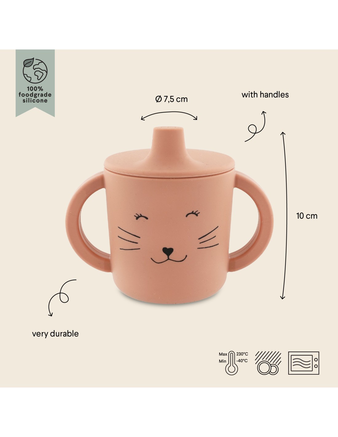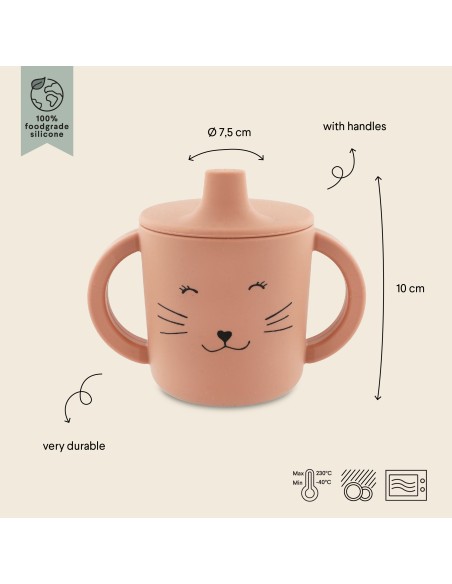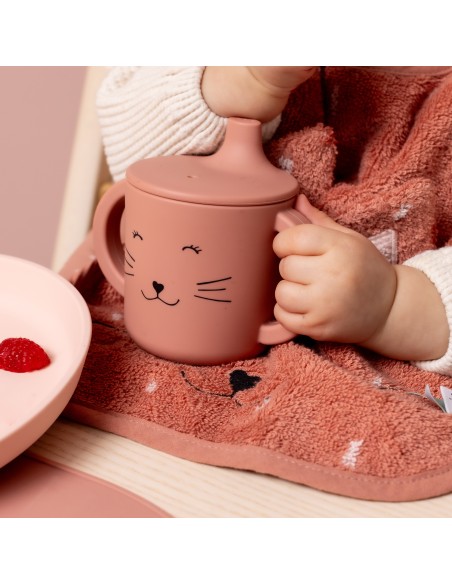 Büyük kulplar bu suluğun kullanımını kolaylaştırır ve çocuğunuzun açık bir bardakla yapacağı gibi tutma ve eğme konusunda harika pratik sunar. Bu damlatmaz bardak çocuğunuzun dökmeden içmesini sağlar; özellikle dışarıdayken kullanışlıdır. Silikon sofra takımı yelpazesi bir tabak, kase, bardak, kaşık ve damlatmaz bardaktan oluşur. Tüm öğeler 3 eğlenceli ve arkadaş canlısı hayvanda mevcuttur. Silikon mutfakta kullanım için mükemmeldir. Kırılmaz, mikrodalgada, bulaşık makinesinde, derin dondurucuda ve fırında güvenle kullanılabilir. Yoğun kullanımda bile sofra takımları iyi durumda kalacak ve küçük erkek kardeşlere, kız kardeşlere veya arkadaşlara kolaylıkla devredilebilecek. %100 gıda sınıfı silikon, tüm Avrupa güvenlik standartlarına uygundur.