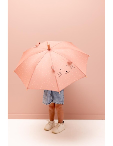 Geri dönüştürülmüş kumaştan yapılmış hayvan şemsiyelerimizle yağmurda şarkı söyleyelim! Küçük çocuğunuzu kuru tutmak için gülümseyen hayvan yüzlerimizle gri günleri anında aydınlatın! Yağmur yağdığında bu neşeli şemsiye ortalığı aydınlatacak. Bay Kutup Ayısı, Bay Tilki, Bayan Fil, Bayan Tavşan, Bay Maymun, Bay Timsah, Bay Aslan ve Bayan Fare arasından seçim yapabilirsiniz. Küçüğünüz yağmur su birikintilerinde zıplarken, sarkık kulakları neşeyle etrafta zıplayacak! Şemsiye %100 geri dönüştürülmüş polyesterden yapılmıştır. Şemsiyenin açılıp kapanmasını sağlayan güvenli sürme sistemi özellikle küçük parmaklar için tasarlanmıştır. Şemsiye, güçlü, yüksek kaliteli ve hafif bir alüminyum çerçeveye sahiptir. Hayvan kuyruklu küçük kayış, güneş parlarken şemsiyeyi düzgün bir şekilde saklamanızı sağlar.