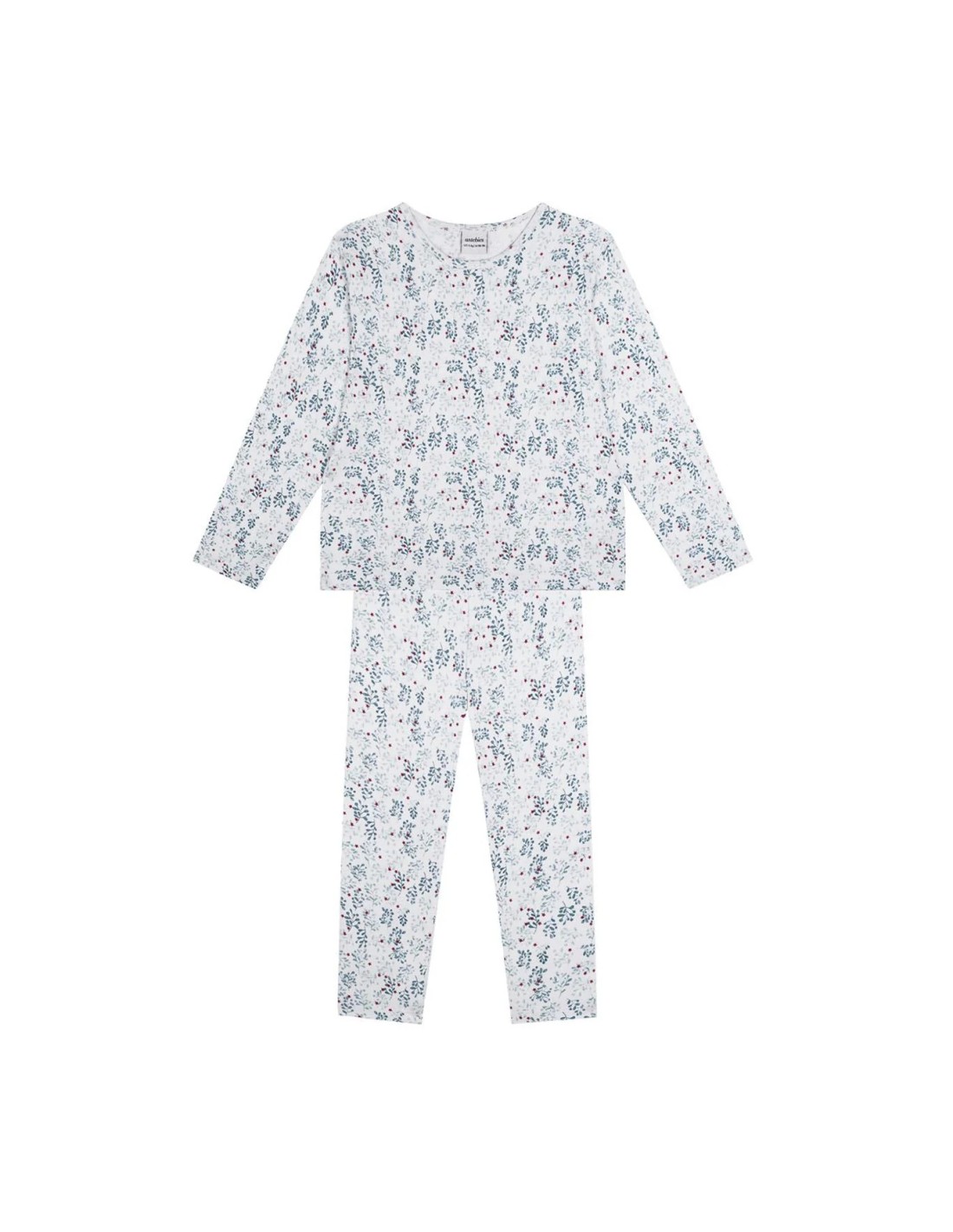 İki parça uzun kollu t-shirt, uzun alt pijama set. Elastik belli tayt ile kombinlenmiştir.