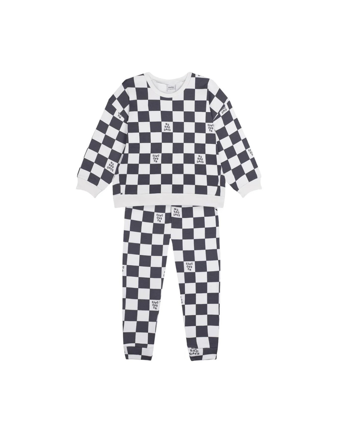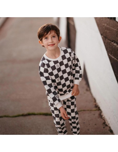 İki parça sweatshirt eşofman set. Yuvarlak yakalı, uzun kollu, dikiş detaylı sweatshirtumuz rahatlık için ribana manşetlerle tamamlanmıştır. Lastik belli eşofmanımız çocuğunuzun beline göre ayarlanabilir şekilde kordonlu olarak üretilmiştir. Kordon güvenlik için sabitlenmiştir.