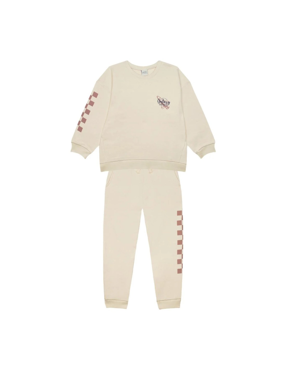 İki parça göğüs, kol ve bacakta parça baskı sweatshirt eşofman set. Yuvarlak yakalı, uzun kollu, dikiş detaylı sweatshirtumuz rahatlık için ribana manşetlerle tamamlanmıştır. Lastik belli eşofmanımız çocuğunuzun beline göre ayarlanabilir şekilde kordonlu olarak üretilmiştir. Kordon güvenlik için sabitlenmiştir.