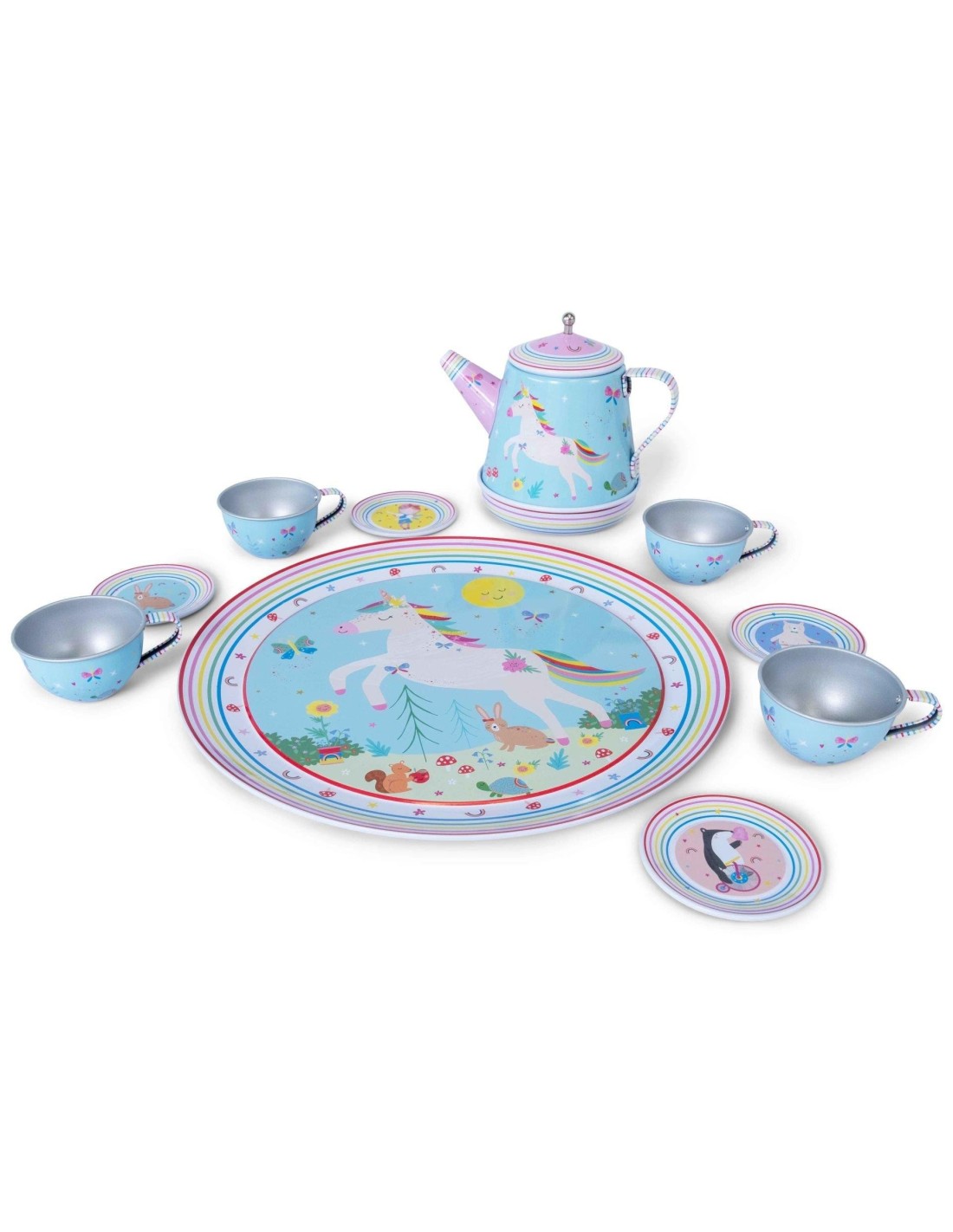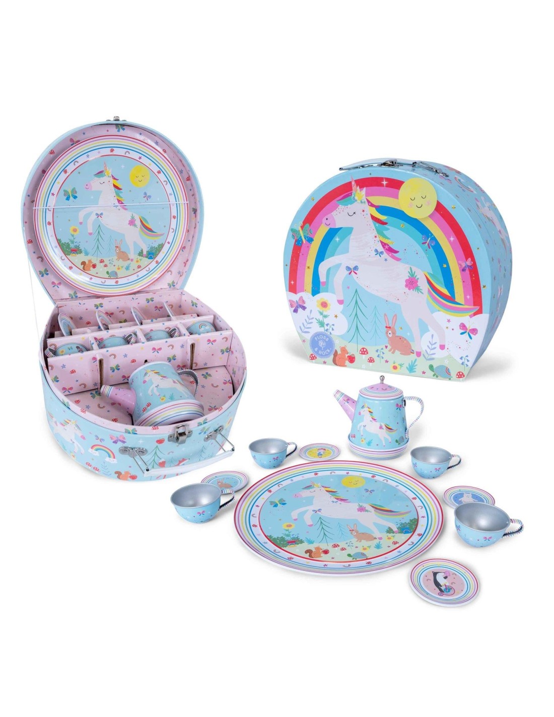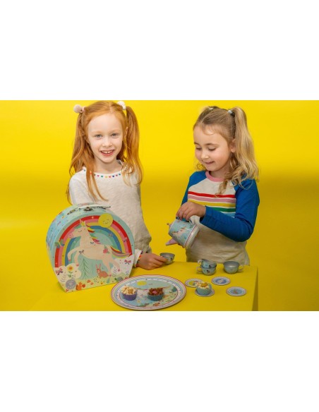 Floss & Rock Rainbow Fairy çay setimizde ışıltılı renklendirilmiş bir kutunun üzerinde periler ,atlar, unicornlar bulunmaktadır. Floss & Rock çay setiyle misafirlerinize servis yaparken, 'Sen benim Güneşimsin' müziğini çalmak için çaydanlığın altını kurmanız yeterlidir. Floss & Rock Çay Seti kutusunun içindeyse bir demlik, dört fincan, dört fincan tabağı ve bir tepsi bulacaksınız. Çay partisindeki misafirlere servis yapmak için harika değil mi? Floss & Rock'ın özenle tasarladığı çay seti küçüklerimizin hayal gücünü geliştirirken aynı zamanda arkadaşlarıyla da oynayabileceği muhteşem bir hediye olacaktır. Rainbow Fairy tasarımlı çay setinin güzel kutusunun bir de taşıma kulpu bulunur, böylece istediği her yere götürebilir. Gıda ile temas edilmemelidir. ÖZELLİKLER: 3+ yaş grubu için uygundur 11 parçalı set Müzikli çaydanlık oyunu 'Sen benim Güneşimsin' Her şeyi saklamak için kullanışlı taşıma çantası Yaratıcı veya grup oyunları için mükemmel! Çevre dostu Soya mürekkepleriyle basılmıştır Tamamen geri dönüştürülebilir Ürün Numarası: 47P5962 BOYUTLAR: 25 x 23,5 x 11cm