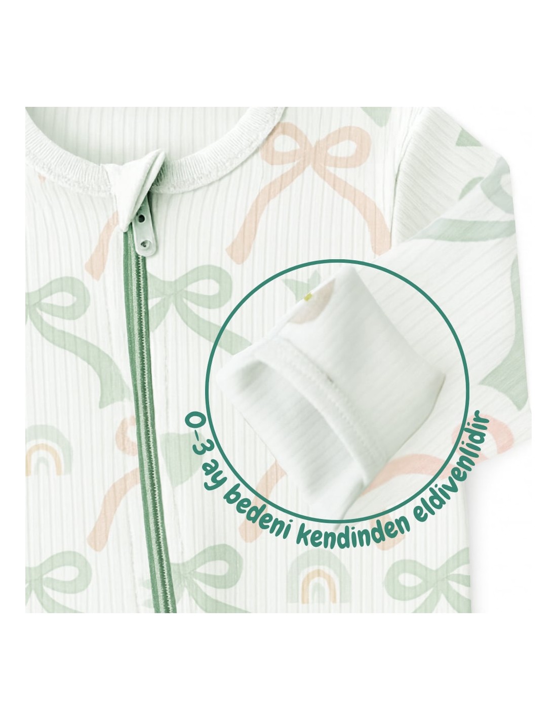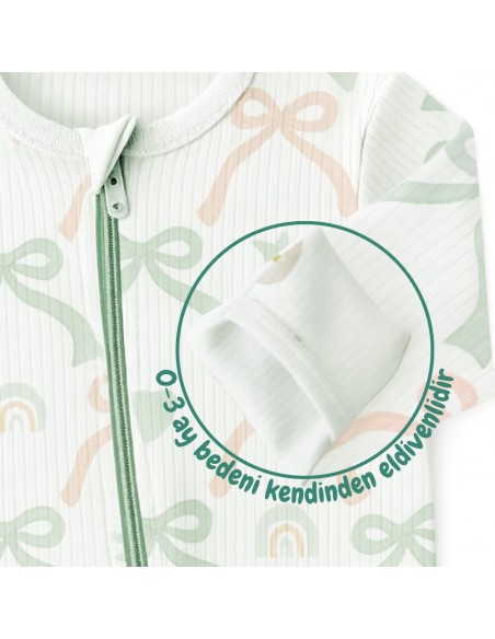 0–3 ay bedenlerinde kendinden eldivenli tasarımı ile bebeğinizin ellerini korur.