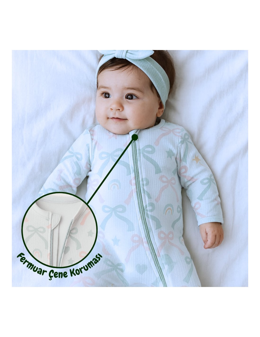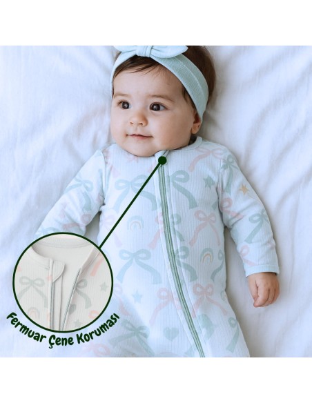 Fermuar koruma detayı sayesinde bebeğinizin cildine temas etmeden güvenle kapanır.