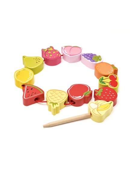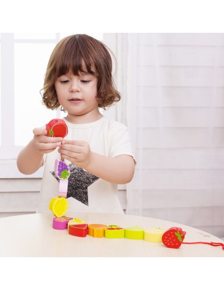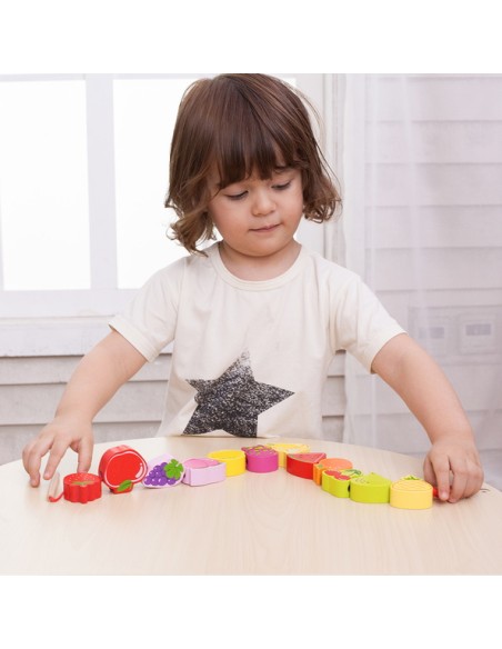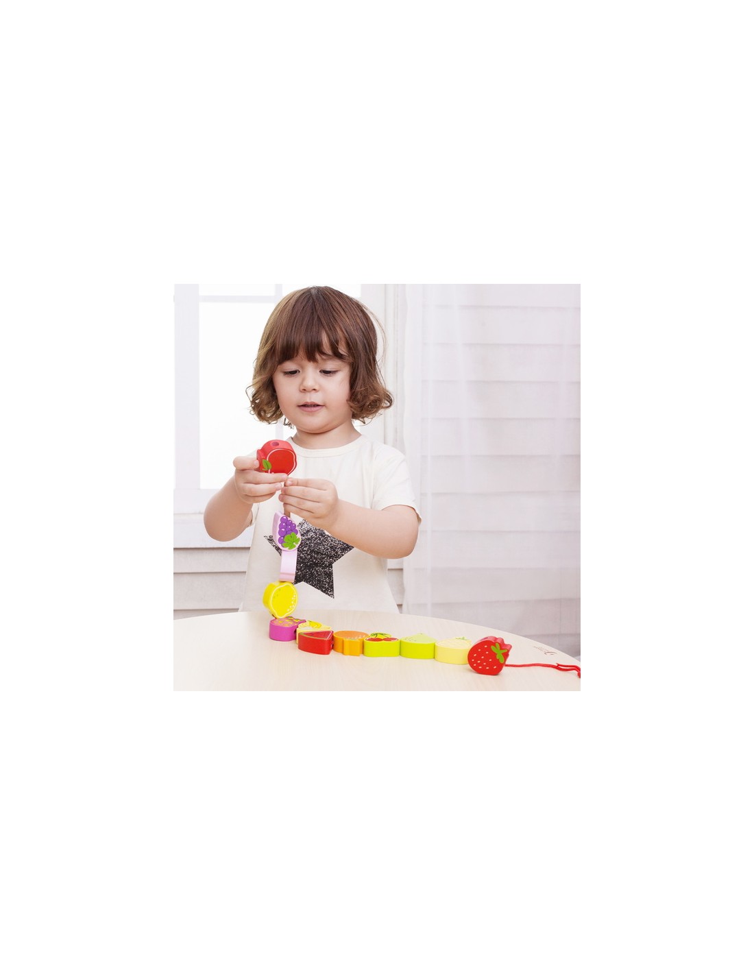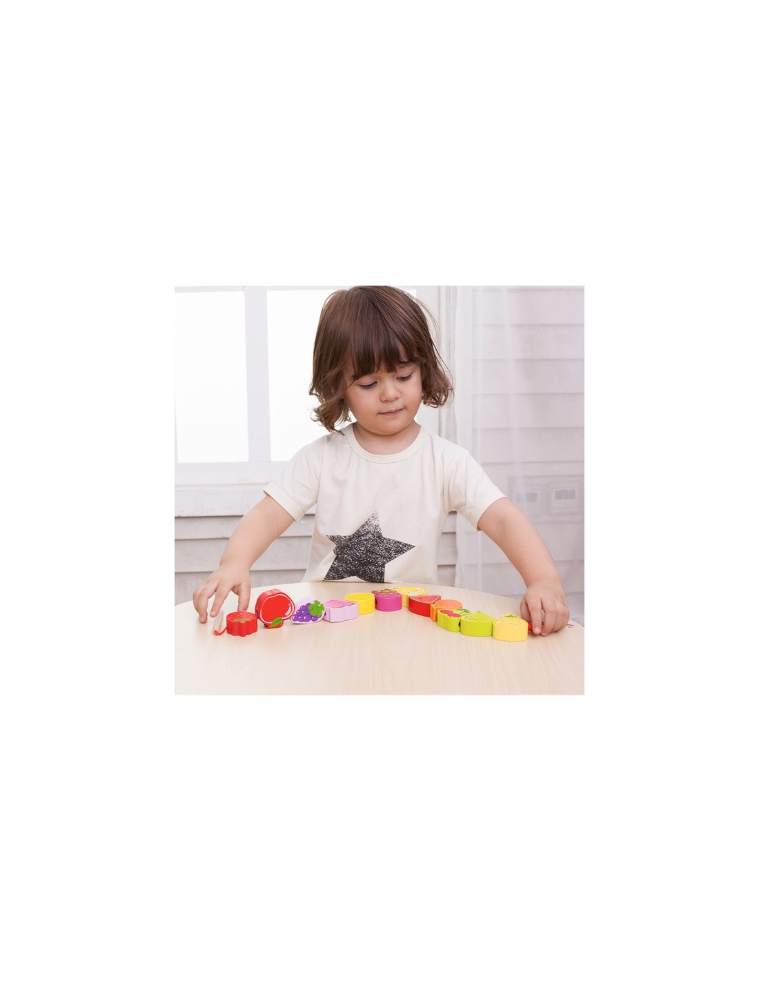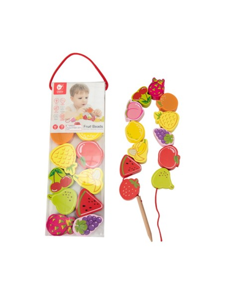 Classic World Ahşap Boncuk Dizme Oyunu – Meyve, çocukların hem eğlenmesini hem de el-göz koordinasyonu, renk ve şekil farkındalığı gibi gelişimsel yetilerini desteklemesini sağlayan keyifli bir eğitim oyuncağıdır. Sette yer alan birbirinden renkli meyve figürleriyle çocuklar boncukları ipe geçirip kendi tasarımlarını yaratırken muhakeme ve ince motor becerilerini güçlendirir.