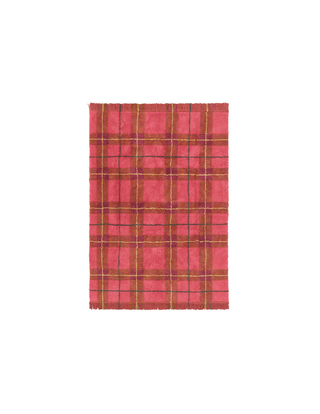 Miniklerinizin odasına şık bir İngiliz ekose dokunuşu katın! Bu yıkanabilir pamuk halı, klasik dokuma ekose desenini normal tüylendirme tekniğiyle yeniden yaratıyor. İki yeni kırmızı tonuyla öne çıkan halı, özenle yerleştirilmiş püsküllerle tamamlanarak sıcak ve davetkar bir atmosfer sunuyor.