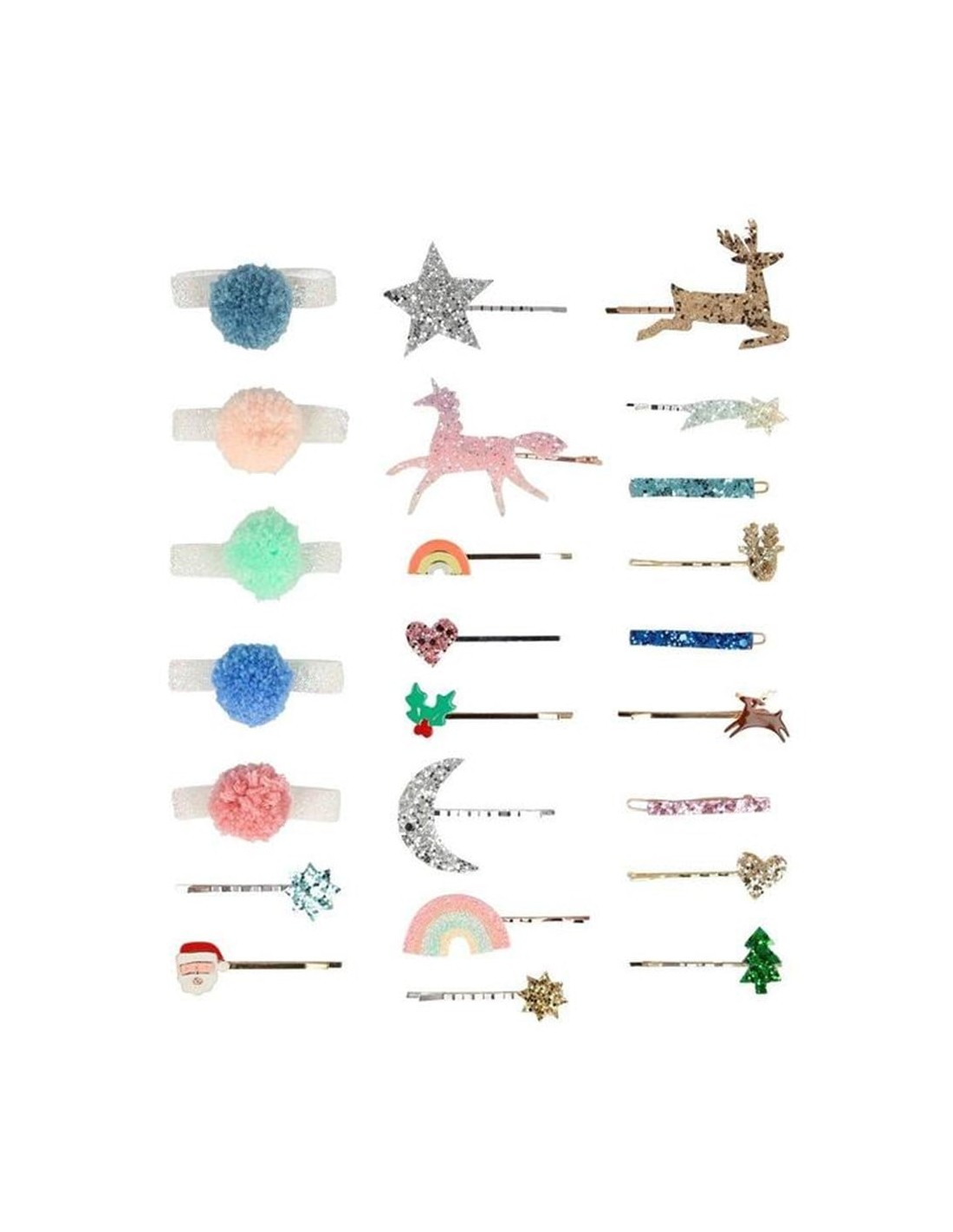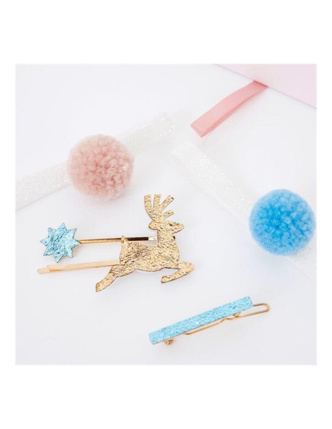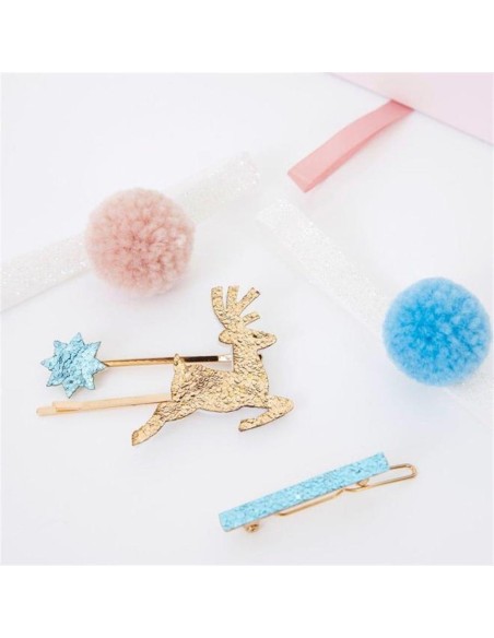 Saç aksesuarları arasında ponpon yanardöner bağları, keçe destekli simli saç tokası ve emaye tasarımlı saç tokası bulunur.