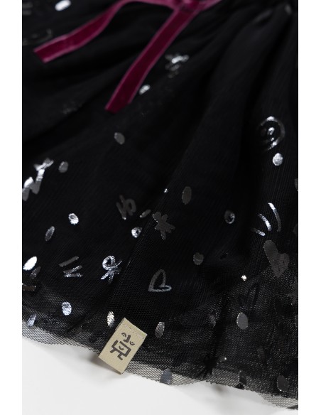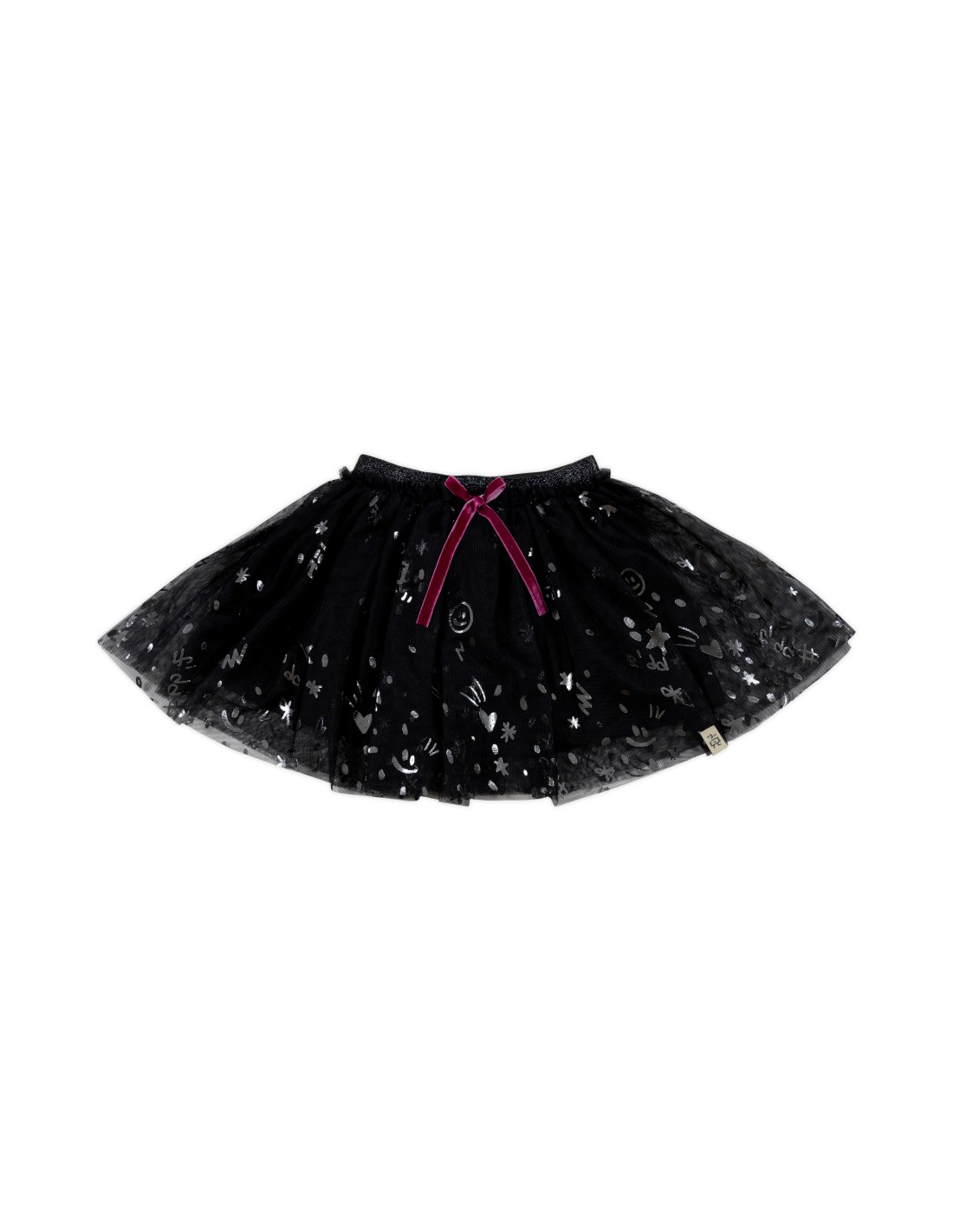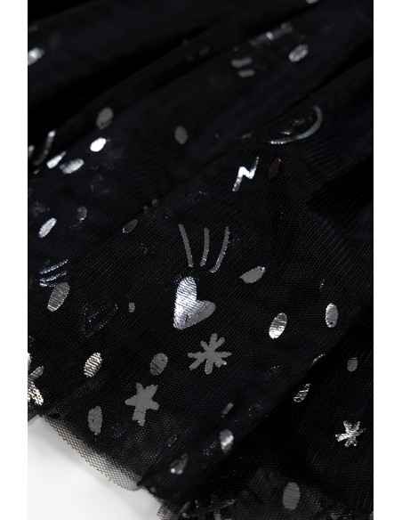 Kız Çocuk Eğlenceli Varak Baskılı Tütü Etek - Siyah