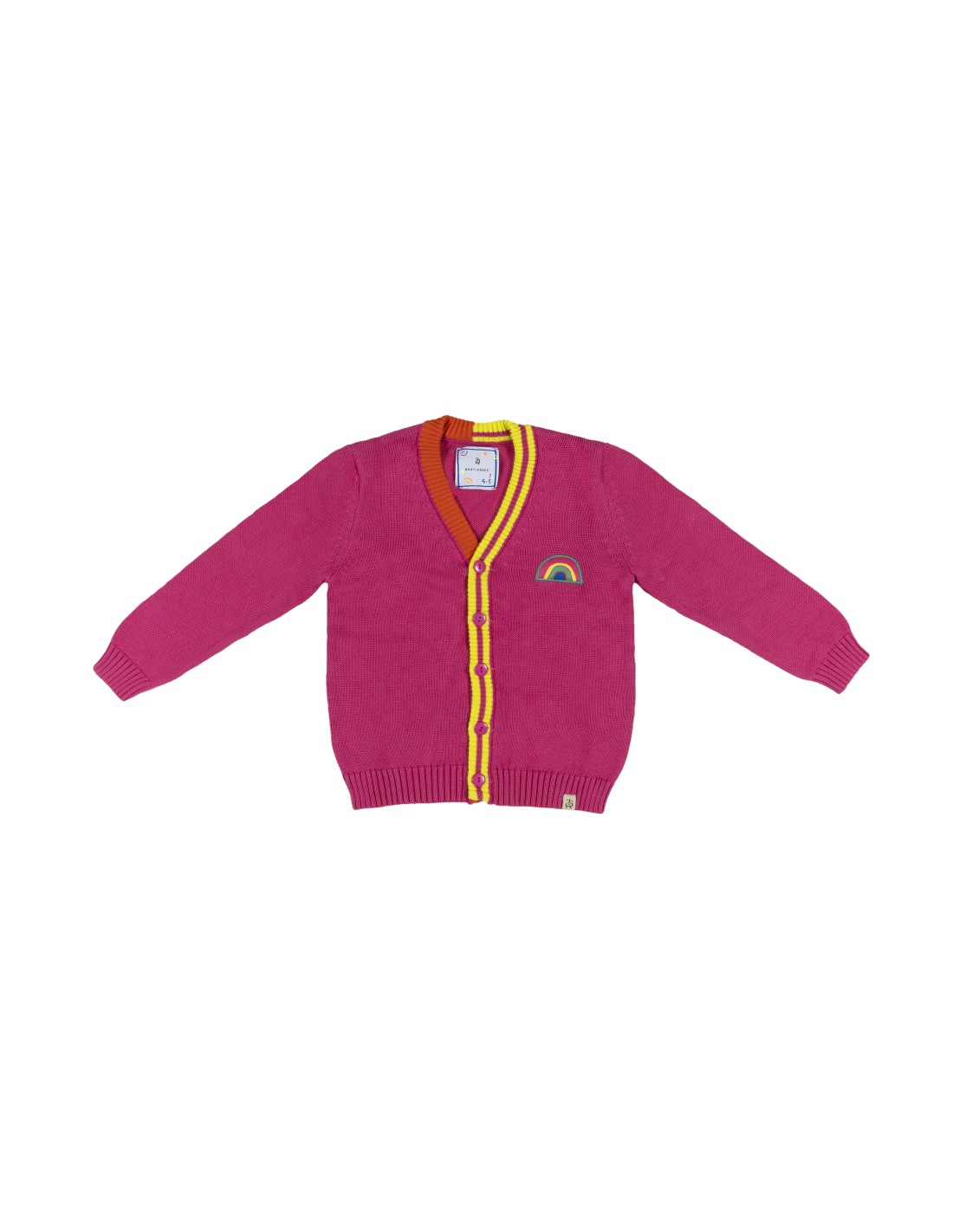 Çocuk Nakış Aplikeli Çizgili Triko Ceket - Pembe/ Turuncu & Pembe & Lime Çizgili Biyeli