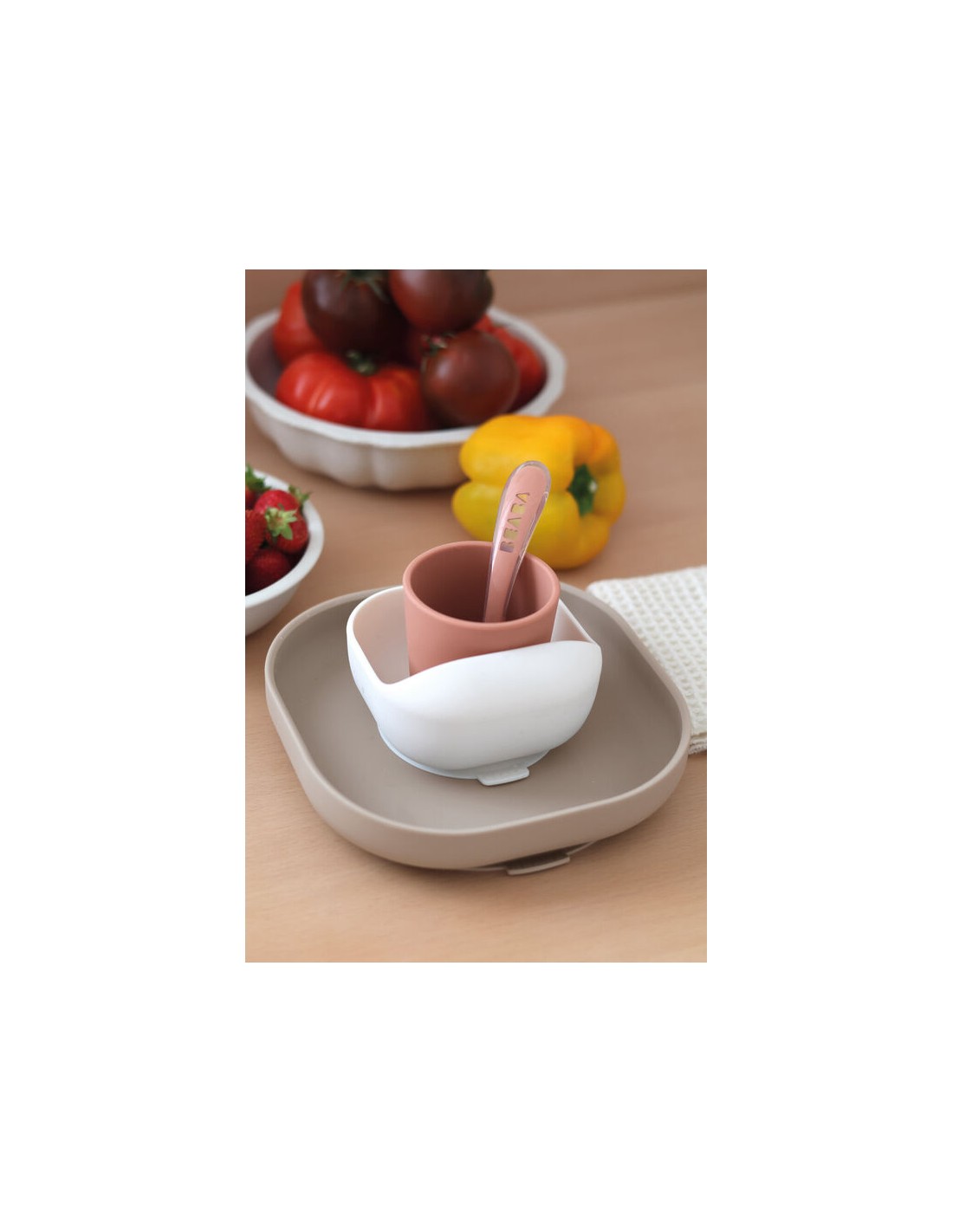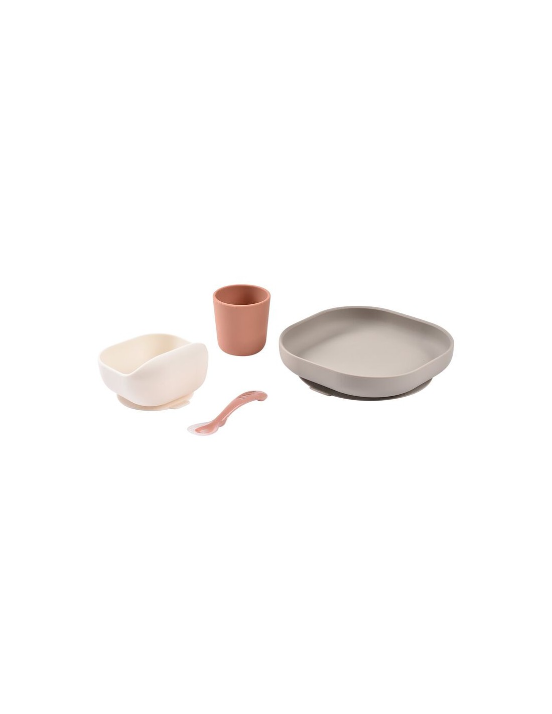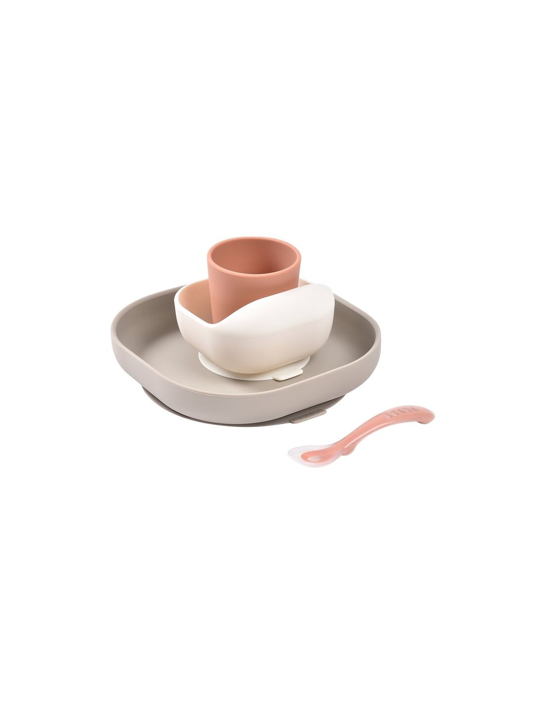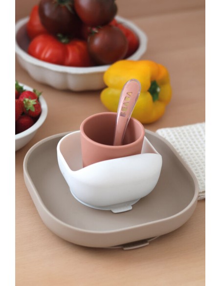 Silikon beslenme seti; Tabak, vakumlu kase, bardak ve silikon kaşıktan oluşmaktadır.