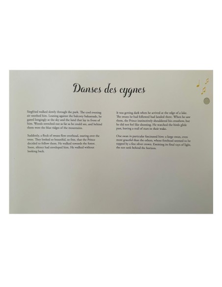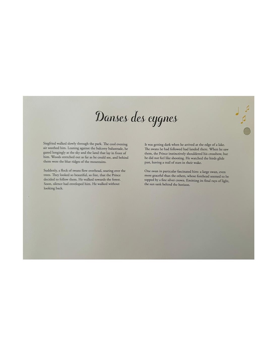 Kitabı okurken, Siegfried ve Odette’in büyüleyici öyküsüne eşlik eden yüksek kaliteli müzik kayıtları ile adeta sahnede bir gösteri izliyormuş gibi hissedeceksiniz. Hem görsel hem işitsel deneyim sunan bu kitap, çocukların hayal gücünü beslerken klasik müziğe olan ilgilerini artırır.