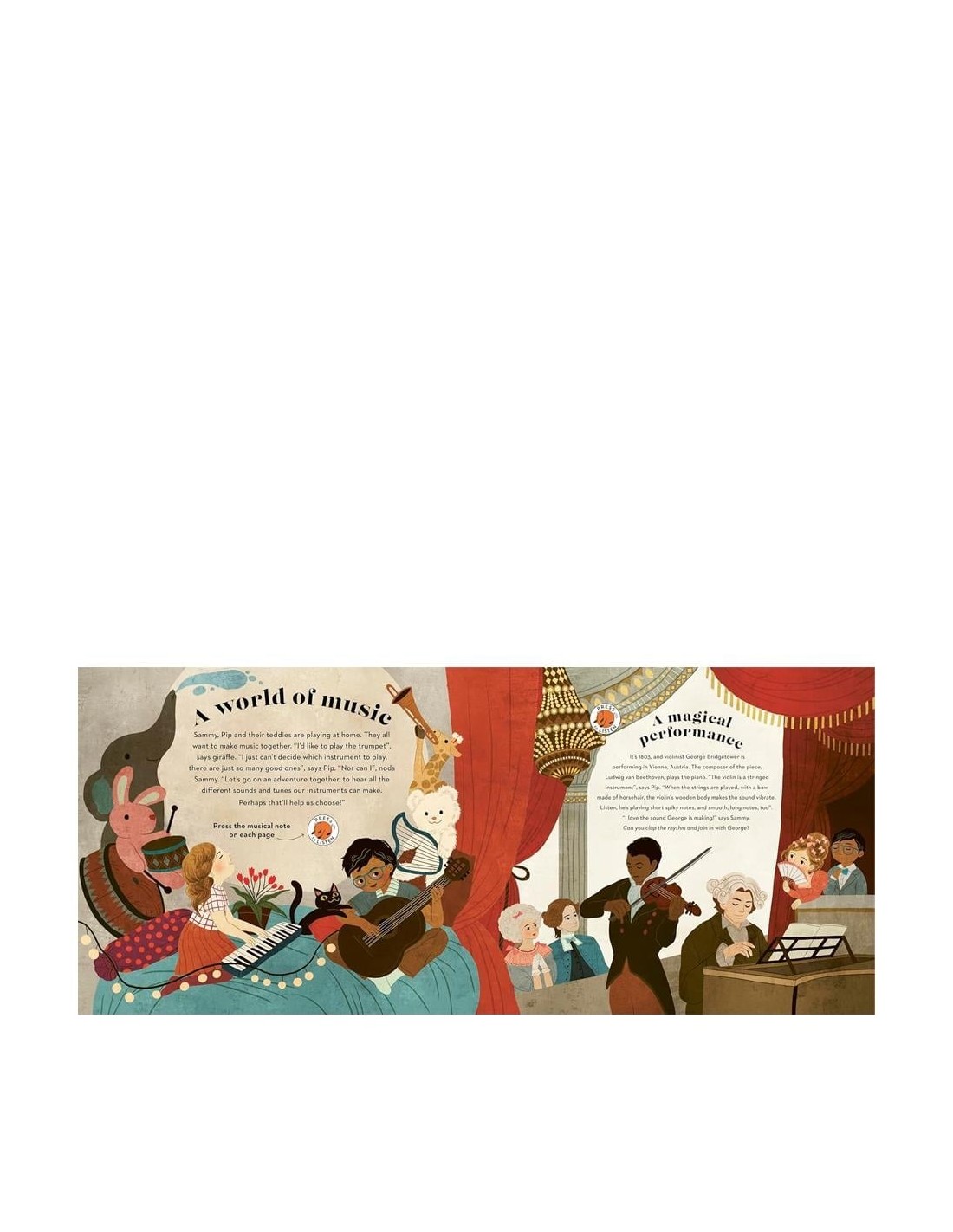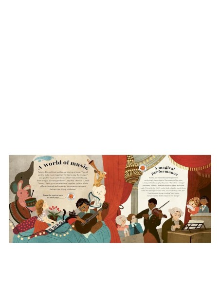 Bu etkileyici sesli kitap, çocukları 10 farklı orkestra enstrümanını tanıtan unutulmaz bir müzik macerasına çıkarıyor. Her sayfada bir düğmeye basarak, dünyanın dört bir yanından müzikal başyapıtların kısa bölümlerini dinleyebilir, Elgar’ın Viyolonsel Konçertosu'ndan Beethoven’ın keman sonatlarına kadar pek çok besteyi keşfedebilirsiniz.