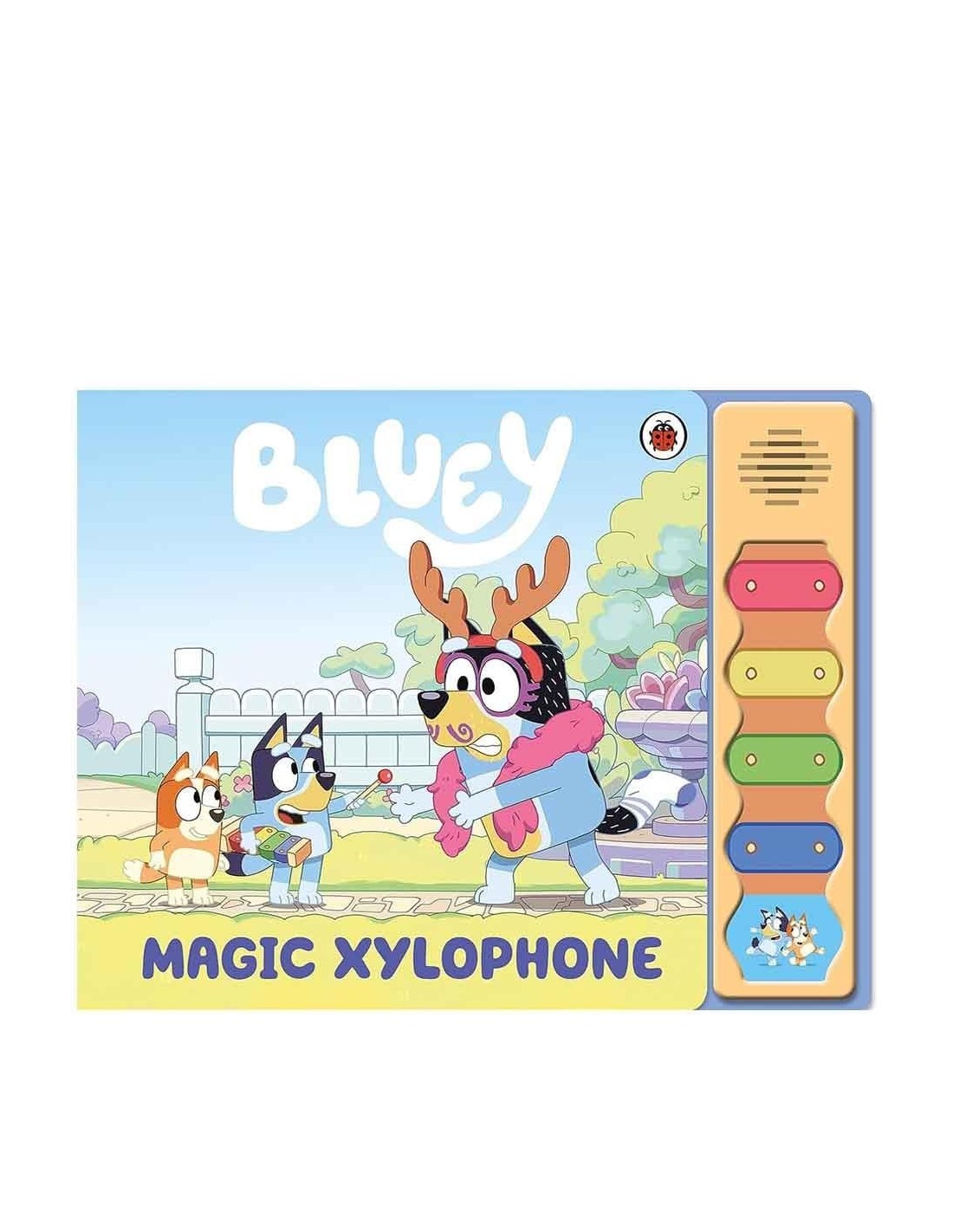 Press the buttons to join in Bluey and Bingo's game of Magic Xylophone in this super fun sound book with 5 different sounds! Do a "Ding!" Bluey and Bingo love playing Magic Xylophone with Dad, but can they learn to share? Bluey and Bingo have a magic xylophone that can freeze Dad in space and time. Help Bluey and Bingo freeze and unfreeze Dad by pressing each of the coloured buttons on your Magic Xylophone when you spot them in the story. Also includes a sound button of Bluey and Bingo laughing! This is a brilliantly noisy gift for every Bluey fan!