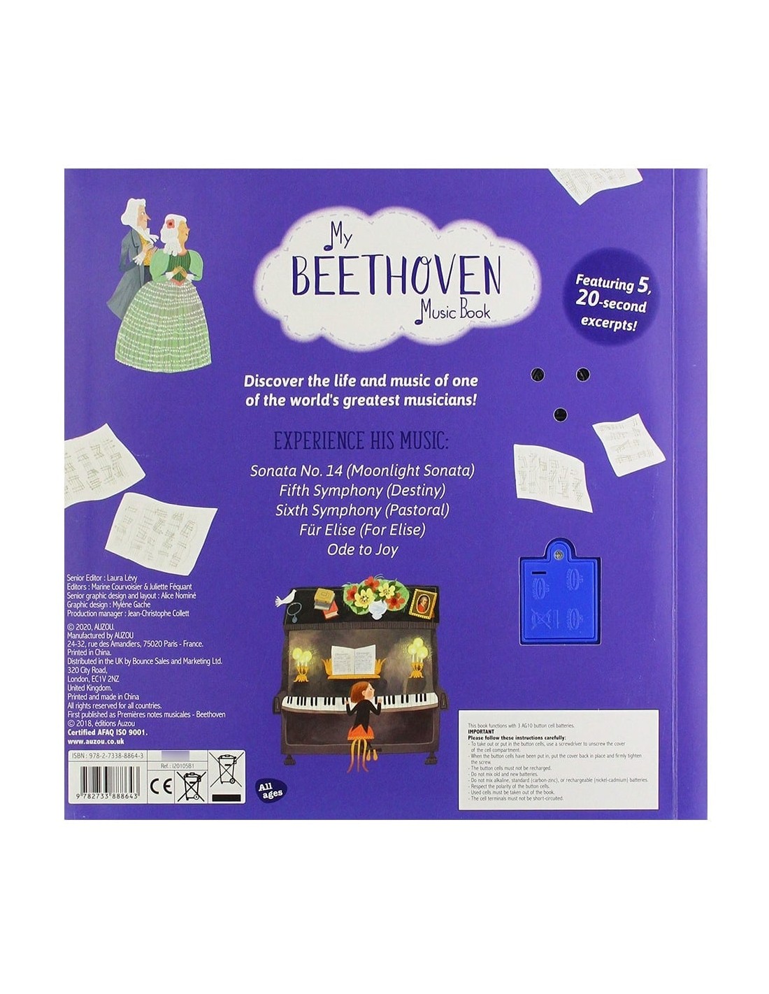 "My Beethoven Music Book" (ISBN: 9782733888643), çocuklar için özel olarak tasarlanmış interaktif bir sesli kitaptır. Bu kitap, çocukların Beethoven'ın yaşamı ve müziğiyle tanışmalarını eğlenceli bir şekilde sağlar.
