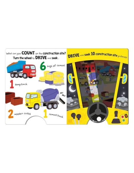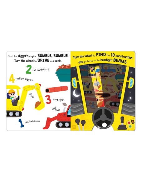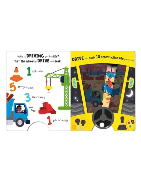 Her sağ sayfada çevrilecek bir kart direksiyon ve keşfedilecek 10 gizli inşaat resmiyle dolu bir "sihirli" pencere bulunur. Kart direksiyonları kullanımı çok kolaydır, sadece her tekerleği bir yandan diğer yana çevirin ve ardından gizli resimlerin ortaya çıkışını izleyin!
