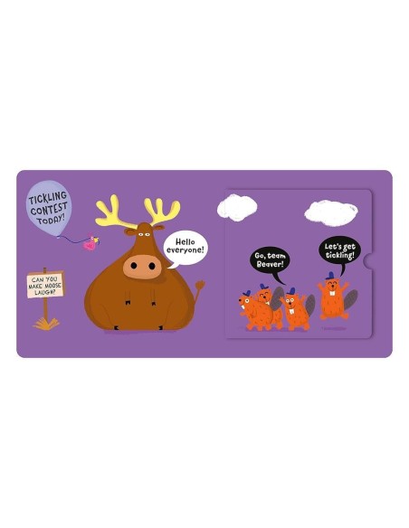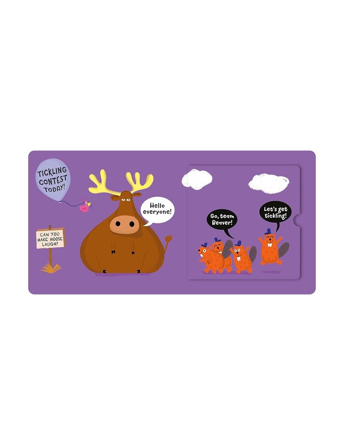 Bu komik, kapağı kaldıran kitap, çocukların Moose'u kıkırdatmaya çalışan her hayvana kahkahalarla gülmelerini sağlayacak. Son kapağın altında gizlenen, genç ve yaşlı yüzleri gülümseteceği garanti olan sürpriz sese dikkat edin! Çılgın bir mizah anlayışı ve isyankâr arsız hayvan oyuncu kadrosuyla bu kalın tahta kitap, Oi hayranları için mükemmel! Kurbağa serisi.
