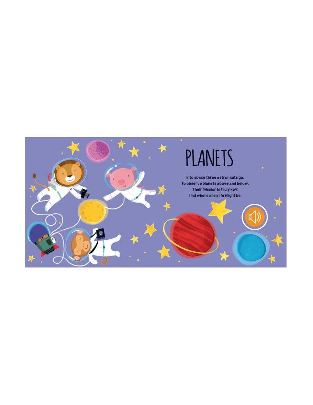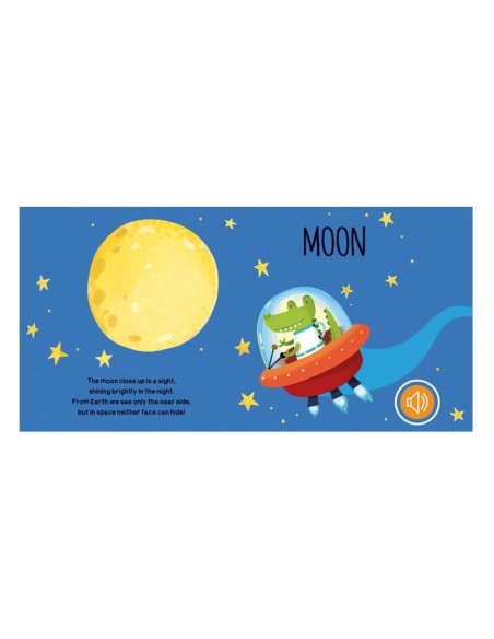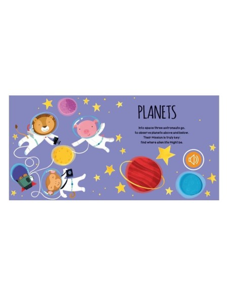 Çocuklar, uzaydaki hayvanların maceralarını keşfederken ses düğmelerine basarak hayvanların çıkardığı sesleri dinleyebilir. Ayrıca, hareketli sekmeyi yukarı-aşağı kaydırarak uzay radarının heyecan verici sesini duyarlar.